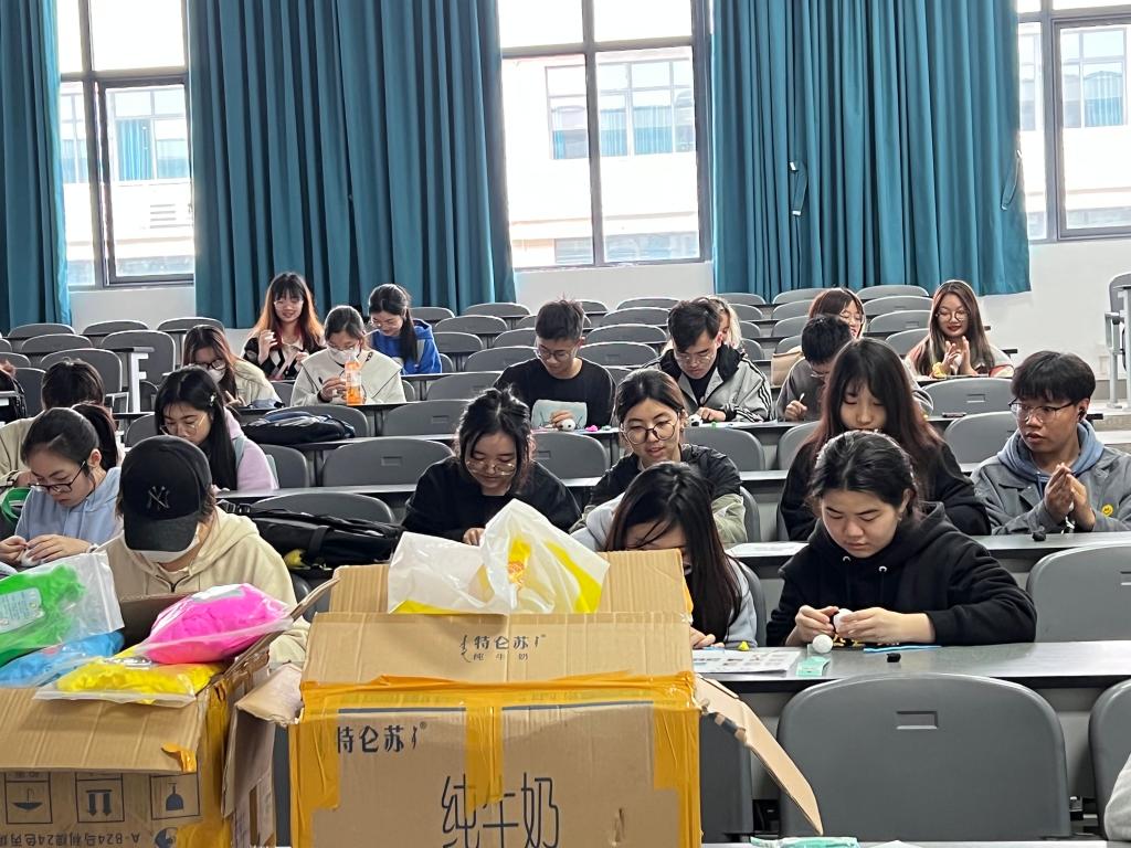 首先,参赛人员在教室第一排签到处签到,然后,在左侧领取材料。组织人员在现场对参赛人员的问题进行了详细解答。随后,参赛人员根据自己的想法,发挥想象力和创造力进行设计制作。大多数团队参赛人员,制作了多个冰墩墩,并且将它们置入符合冬奥会的场景中,体现了参赛者自身对于冬奥会的理解。个人方式参赛人员,一般采用制作单个冰墩墩。同学们将自己的作品拍照分享到QQ答疑群,活跃了比赛气氛。参赛人员制作的冰墩墩形态各异,有的敦实、憨厚,有的精灵古怪,还有的别具一格。