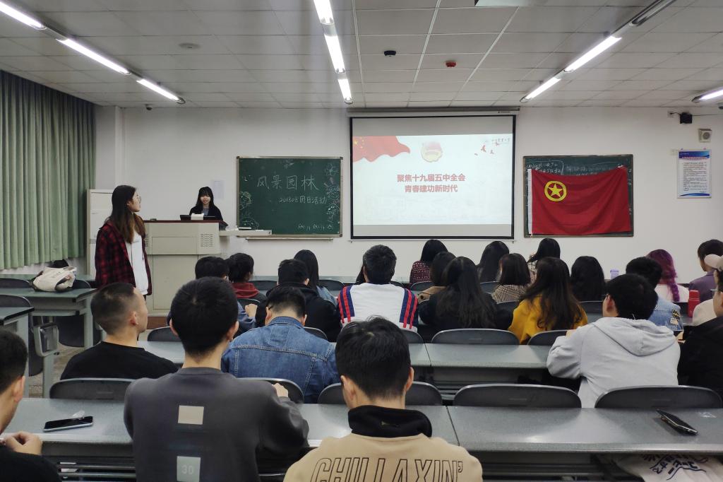 2020年11月17日晚8:00,风景园林201808班在4-B404举办了以“聚焦十九届五中全会,青春建功新时代”为主题的团日活动。本次团日活动通过丰富有趣的活动安排,让同学们充分了解十九届五中全会的主要内容,回顾“十三五”展望“十四五”,明确当代老员工在这一历史时期应当肩负的职责。