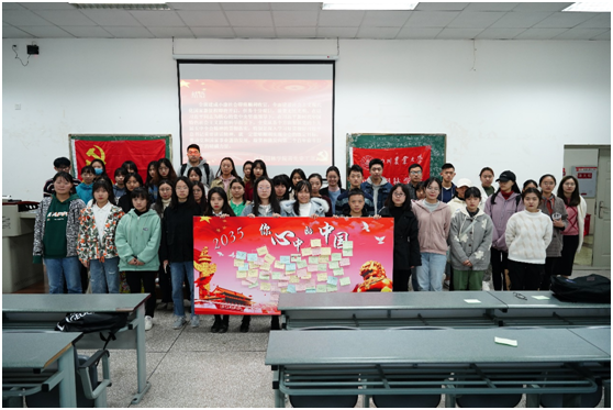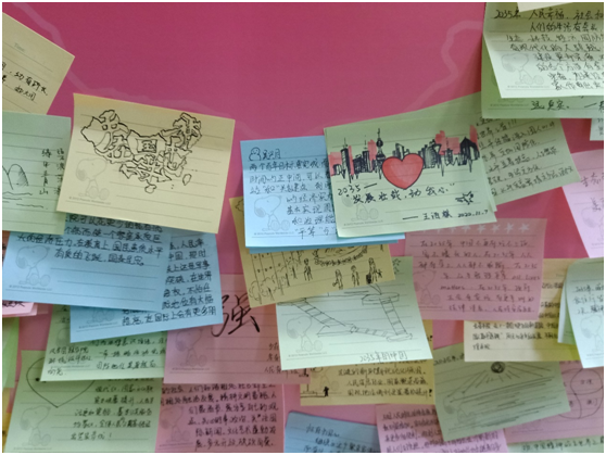 最后,全体同学在便签上书写或者绘制了2035年他们心中的中国的面貌并且将便签粘贴至主题板上形成一个中国地图的形状。活动以全体成员围绕这张主题板的合影作为结尾。