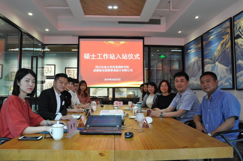 4月23日上午,K1体育硕士工作站入站仪式在成都普禾国景景观设计有限公司会议室举行,公司党委书记李静波,副经理、园林研究所所长李西,成都普禾国景景观设计有限公司总经理杨茅矛、常务副总经理姜录梅、设计部主任张亚莉及公司相关负责老师、第一批进站的4名优秀研究生黄玥、熊英、陈怡霖、岑默索参加会议。会议由普禾国景常务副总经理姜录梅主持。