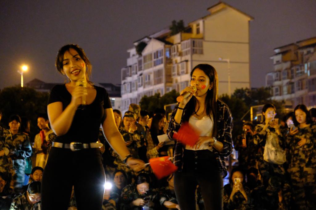不仅如此,在操场散步的国际友人,来自摩洛哥的两位国贸新生也参与到了此次慰问演出,她们热情地给公司新生们献上一曲,还积极畅谈了兴趣爱好,希望交到更多朋友。当问到参与慰问演出的收获时,她们齐声道了一句“We meet you”。无论是教官还是新生,或是远道而来的国际友人,相识让大家相知,“我遇见了你”是最好的证明。