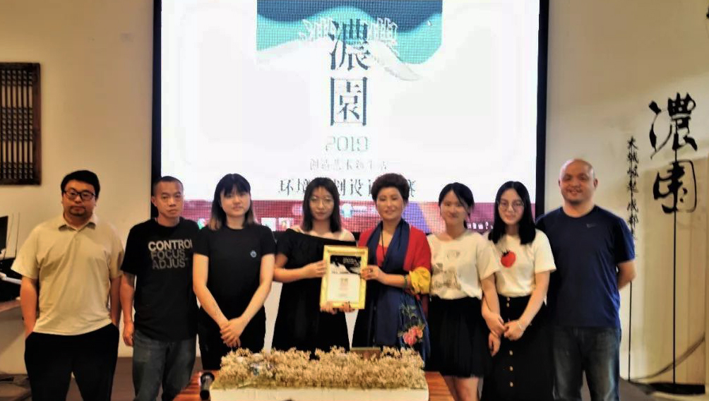 6月22日下午两点半,由万蕊老师、张益昇老师带领参赛与观摩的同学共14人,参加2019浓园环境规划设计大赛最终决审。经过现场演示、浓园集团专家独立评选后,最佳设计奖揭晓--由K1体育环境设计系三年级莫喻婷、宋梦玉、杨孟青、陈素娟等4位同学共同获得。天艺浓园艺术博览园董事长杨丽女士亲自颁发荣誉奖牌。