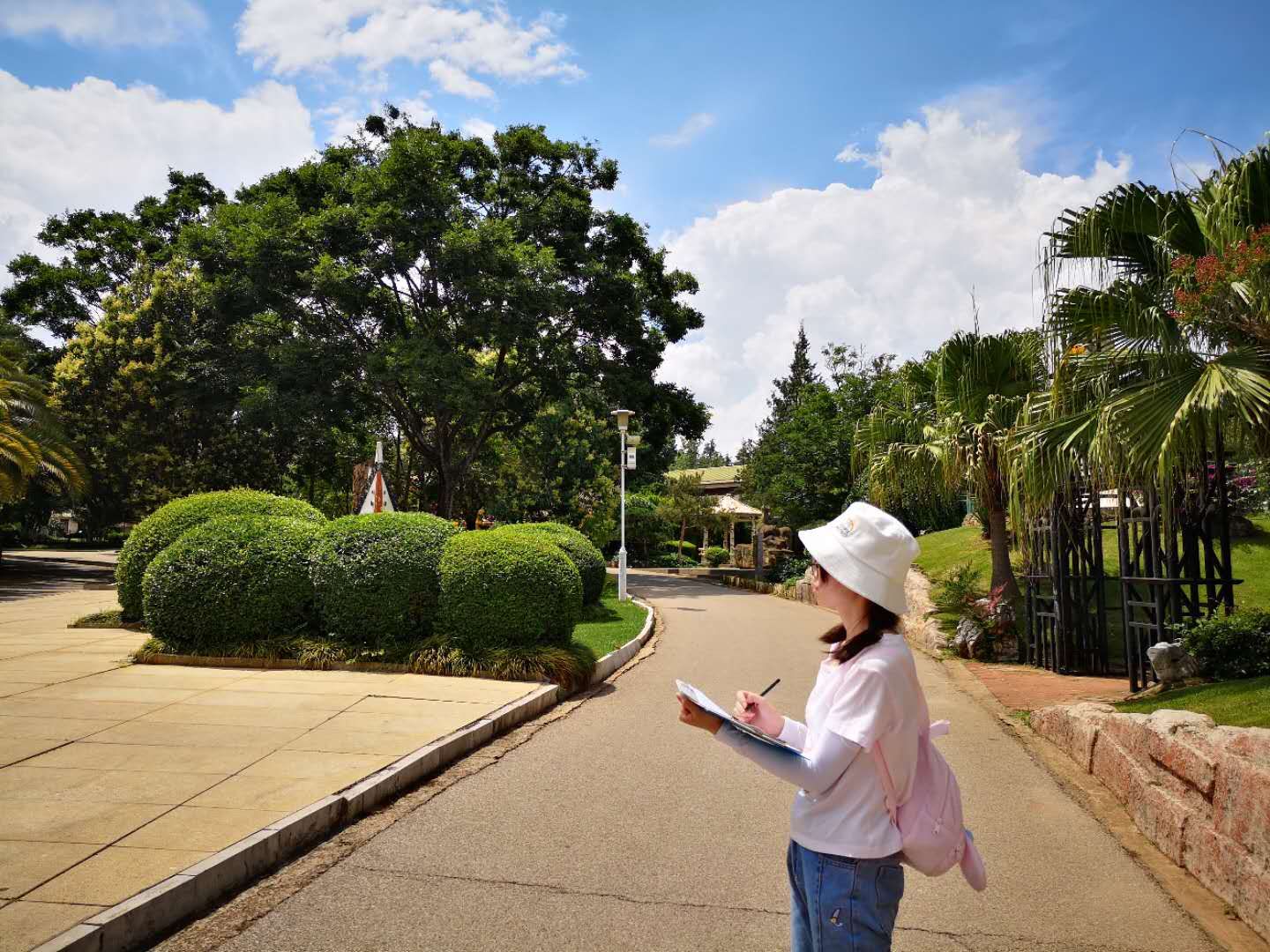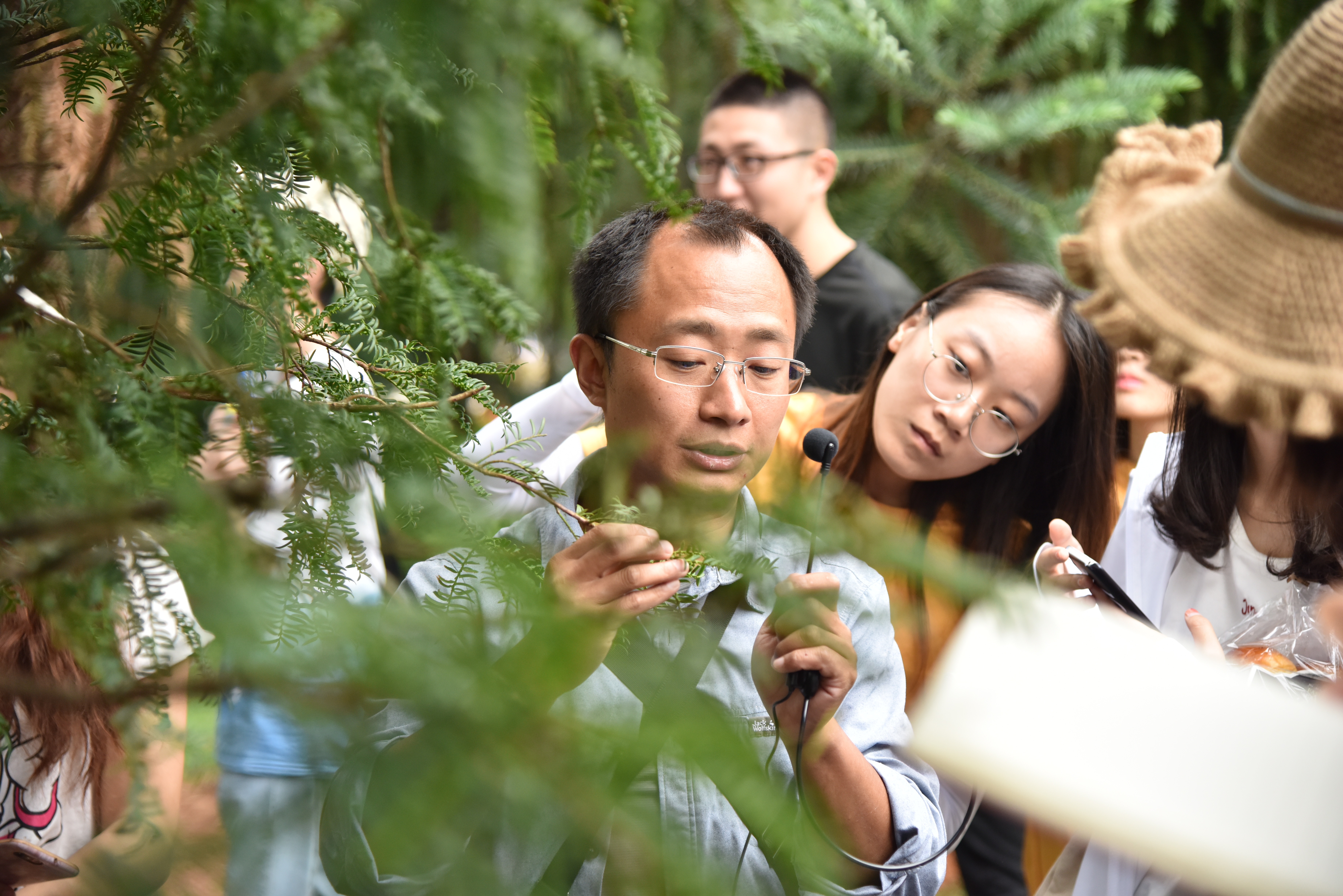 实习第一站——昆明植物园。为了强化实习质量,公司专门聘请了西南林业大学林公司的三位老师为同学们进行介绍。一天的时间,同学们识别了特色园林植物约300余种,了解了重点树种和草本花卉的识别特征、观赏特征、主要生态特性及园林用途。这些植物有在成都常见的,有以前从来没见过的,有外来入侵树种,也有国家一级保护树种,让同学们大开眼界。图2