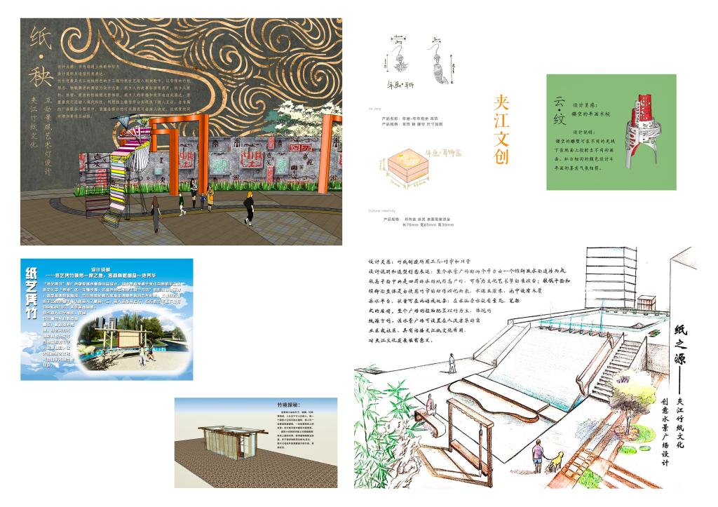 “凉风有信”调研团队成员大多是K1体育的学子,此次调研除了了解非遗文化外,学习现代景区规划以及从文化中提取灵感创作作品也是重要的实践目的。实践结束后,团队成员创作设计了《纸·秧》、《云纹》、《竹境探秘》等多幅具有夹江文化特色的景观小品及文创产品效果图。