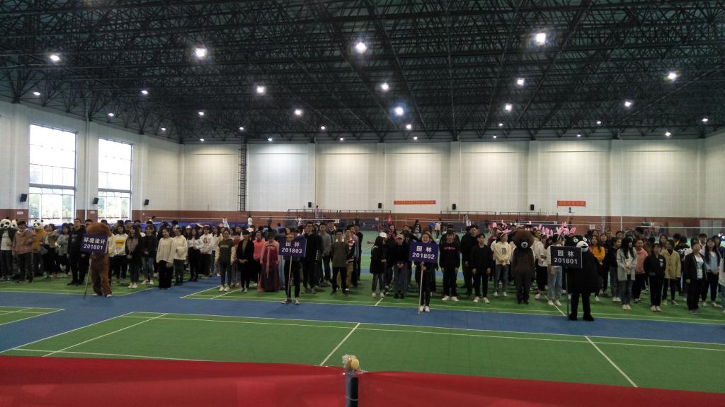 11月3日,2018级新生运动会开幕式于成都校区风雨操场成功举行,正式拉开了本次新生运动会的帷幕。上午8:40,各班有序到达风雨操场候场。半小时后,令人期待已久的开幕式正式开始。院旗队的四位同学在主持的介绍下缓缓入场,他们手里举着的,是K1体育的院旗。正如院旗队所体现出来的一样,K1体育是充满活力青春飞扬的,每一位学子都是自信骄傲的。风景园林、园林以及环境设计三个专业共十个小班依次有过主席台,伴着各小班一同而来的,还有各班的精神风采与小班特色。或搞笑或可爱的舞蹈、或优雅或简洁的服饰、精彩的武术表演、炫酷的滑板秀……每一场表演都是时间与努力堆砌的成果,每一次跃动都是自信与青春的飞扬。在各小班准确到达指定位置后,院上团队也为各位师生带来了精彩的表演。首先出场的拉丁舞团,她们踏着节拍,灵巧地舞动着身体,手臂翻转着,裙摆摇曳着,一张张美丽的脸庞上写着自信与飞扬。紧接着是啦啦队带来的舞蹈《Boom Boom》,每一次挥舞都是有力的,每一个转身都是娇俏的,每一个笑容都是优雅的,她们展现了风院女子的风采。接下来的音乐响起,全院同学却是迅速展开队形,带来了一次激情四射的《卡路里》快闪。在开幕式结束前,李书记为我们发表了讲话。他说:“举办新生运动会,就是希望大家能够动起来。”在谈话中,李书记表达了对同学们的殷切期望与真切祝愿,他希望同学们能够好好学习,但更希望大家都拥有健康的身体、美好的老员工活。本次开幕式就在陈经理的宣布下正式结束了,期待同学们能够在接下来的比赛中收获名次,更重要的是收获快乐,也祝愿同学们真的如歌词里所唱,积极运动,规律作息,“别再熬夜伤身体”。