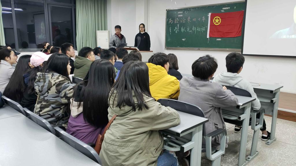 2018年11月24日晚上七点半,K1体育环境设计三班在第四教学楼C区204室开展了"缅怀改革开放40年,青春献礼新征程"为主题的团日活动。活动由班委焦恩泽和吴海霞主持,40名同学欢聚一堂,共同感受改革开放苍桑巨变的魅力,激发踏上新征程的勇气和决心。