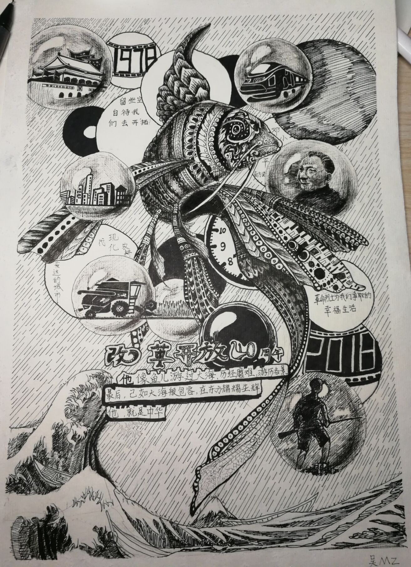 活动伊始,全体同学起立,唱响中国共产主义青年团团歌。伴随着激昂而庄严的歌曲,同学们参与本次活动的热情被彻底点燃。耳边激情四射的旋律仍在回荡,由吴海霞同学制作的“快闪”视频短片已经投射在洁白的大屏幕上,然后,反映改革开放四十周年的纪录片《历史告诉未来》接踵而来,目不暇接的视频以最直观的感受最激情四溢的冲击力让同学们沉浸在改开40年旧貌换新颜的沧桑与辉煌之中。紧随其后的是由全体班委策划组织的改革开放40周年知识竞答节目,同学们踊跃上前,积极互动,你来我往,体现了“人人参与、全员互动”的集体主义精神。活动进入第四个节目的时候,风格一变,由本班同学自编自导自演的小品《珍惜当下》闪亮登场,以欢快而又诙谐的表演,调动起全场活泼欢快的气氛,从又一侧面加深了小班同学对改革开放的认识。而后进入的由全班同学以自己的特长献礼改革开放40周年的小班作品展示环节,同学们将自己精心制作的20件作品一一呈现出来,每一件无一不贴近着改革开放的历史,无一不涌动着苍桑巨变的赞叹,浓浓的体现出了小班同学对改革开放的感悟之深,体会之切。