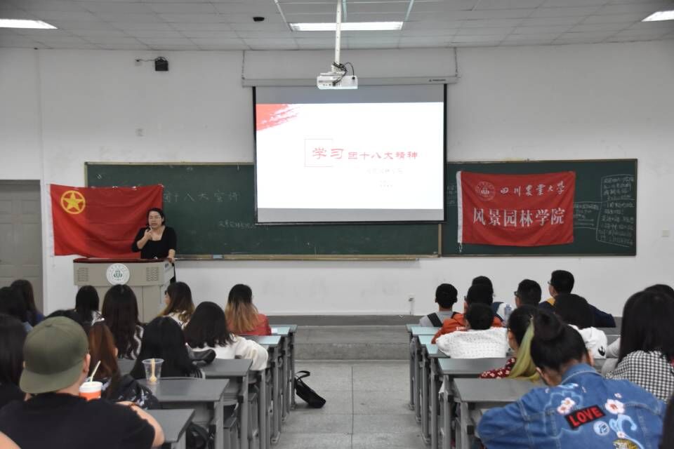 9月12日中午12:30分,于第四教学楼A区,党委办公室副主任、团委副书记朱玉老师给大家讲述了她对于团十八大内涵及精神的认知,朱玉老师从政治身份的认知出发,谈及政治素养与专业素养往往相辅相成、密不可分,提醒同学们政治学习绝不是泛泛而谈。在朱老师问及共青团的定义时,作为青年先锋队队长的郭玺同学发表了他对于“共青团”的认知——共青团团员们都是党的发展对象,讲到政治连续性一致性对于国家发展的重要性时,园林1702支部团干则踊跃发言,表示他心目中中华最盛在唐朝,而重现唐朝盛世、中华盛景,实现中华民族伟大复兴,便是我们当代老员工的责任与担当。在这堂充满互动、活泼轻松的团十八大宣讲活动中。团员干部们认知到十八大精神的学习是广大团员的必修课,及终身进行政治学习的必要性。