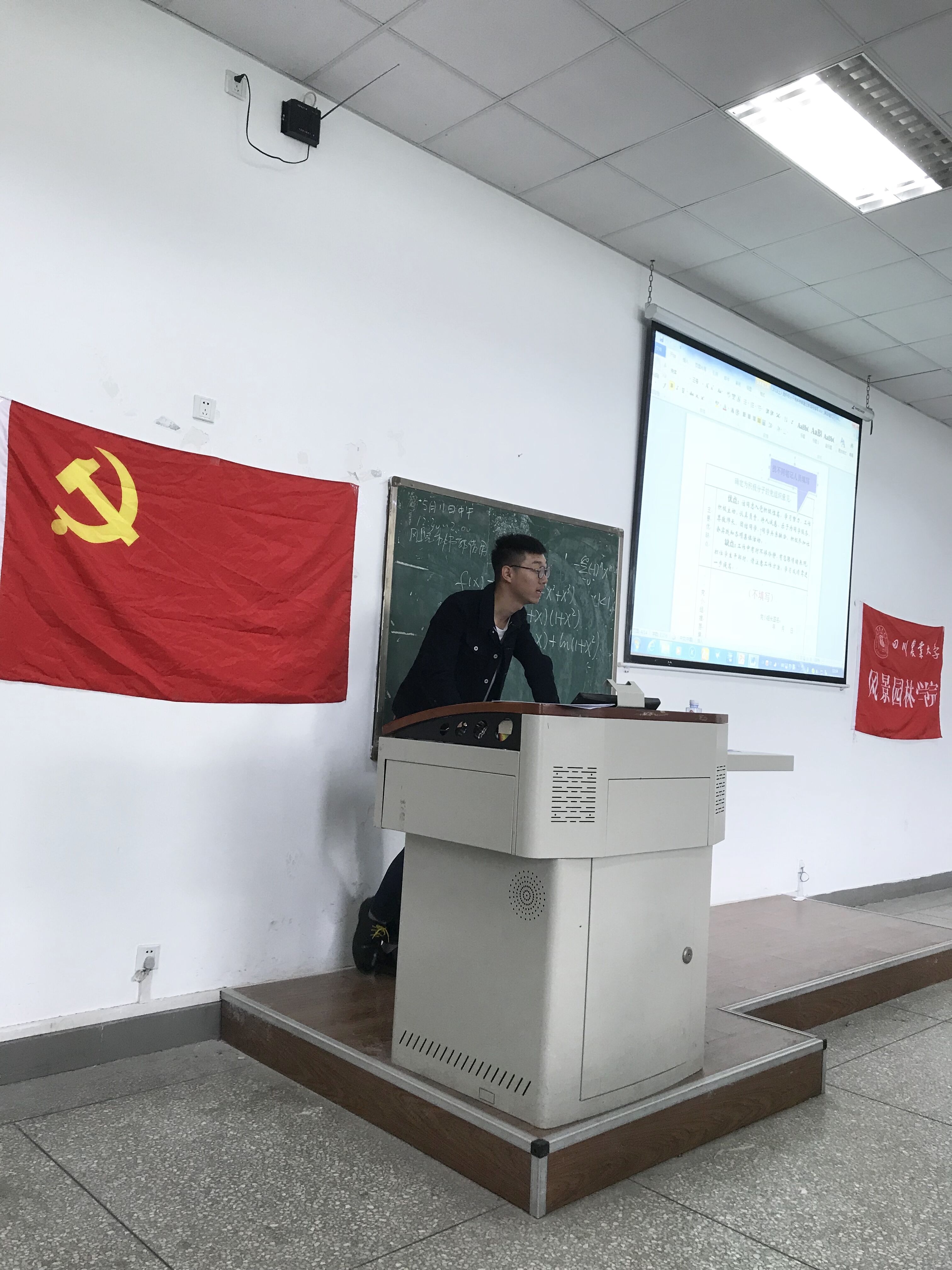 在鲜红的党旗和院旗下,罗芃睿干事和白喻萍部长先后走上讲台,耐心地为预备党员们讲解了精心准备的材料填写PPT,并就材料填写的具体情况统一给预备党员们答疑解惑。最后,由秘书部的同学们为发展党员们进行一对一地问题解答,使其对成为预备党员建立一个更为清晰的认识。