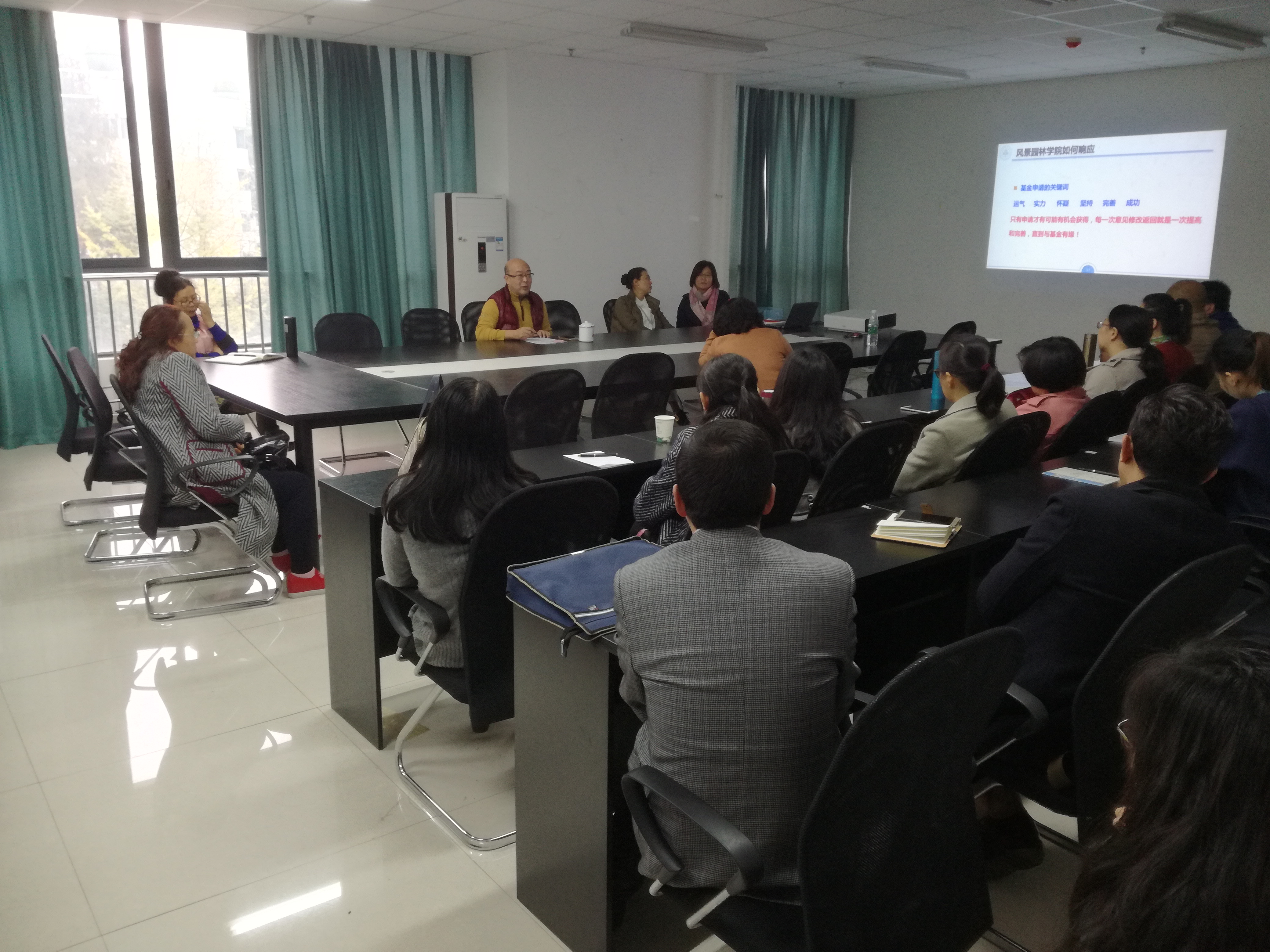 李西副经理传达了公司在11月11日都江堰校区召开的国家科学基金项目申报动员暨培训辅导会议的全部精神,把“压力与动力”的感悟进行了实时分享。同时,结合公司实际情况,提出了公司将以“申报数量与质量双突破”为目标,并制定了6条切实可行的举措。李西指出,2017年获得了4项(2项青年,2项面上)国家自然科学基金申报的好成绩,但还有很多努力的空间和未突破的领域,尤其是社科基金、规划设计类基金项目。公司原则上要求具有副高以上职称、博士学位老师主动申报,鼓励行政、实验系列、具有一定研究基础非博士学位的讲师积极申报。公司成立以园林研究所马均教授牵头的基金指导小组,将邀请校外、院外的专家进行“晒本子、提建议、升质量”计划。