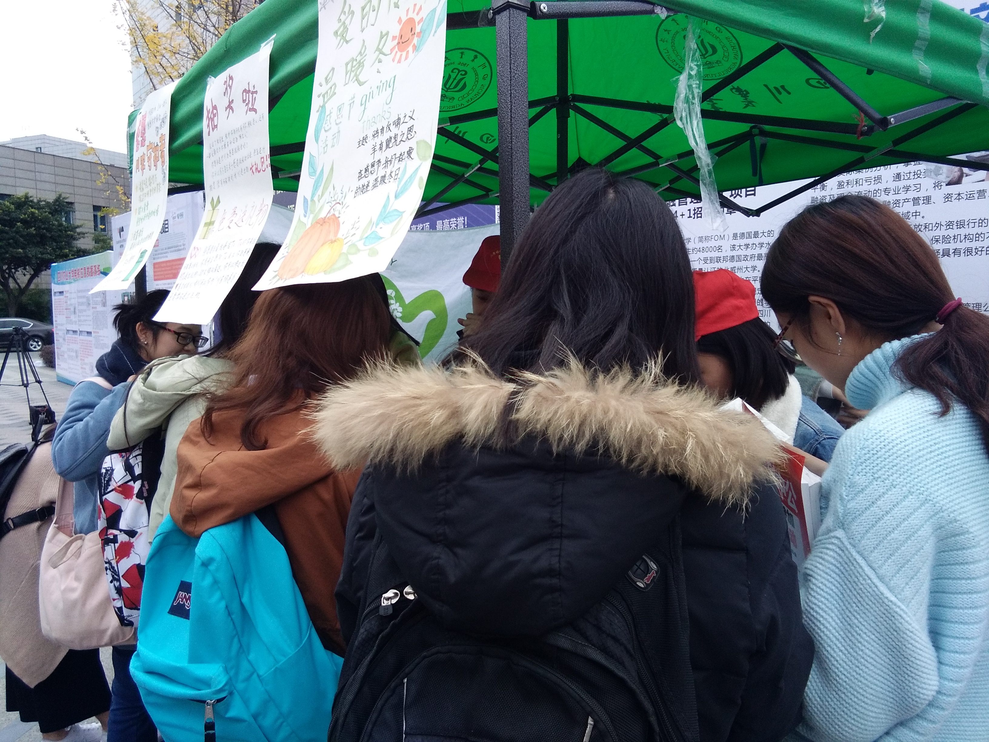 该活动分为两部分,第一个部分旨在向“川农守护者”道出川农员工的感恩之情。有近百名员工踊跃参加,给校园内的工作人员细心书写明信片表达对他们默默付出的感谢。第二部分则是以交换明信片的形式,认识校园内擦肩而过的陌生人,分享他们感恩的话语。其中不乏有同学将自己对老师,舍友的感谢写在明信片上,青年志愿者协会的工作人员则扮演“快递员”,将他们的明信片与感谢一同传递。