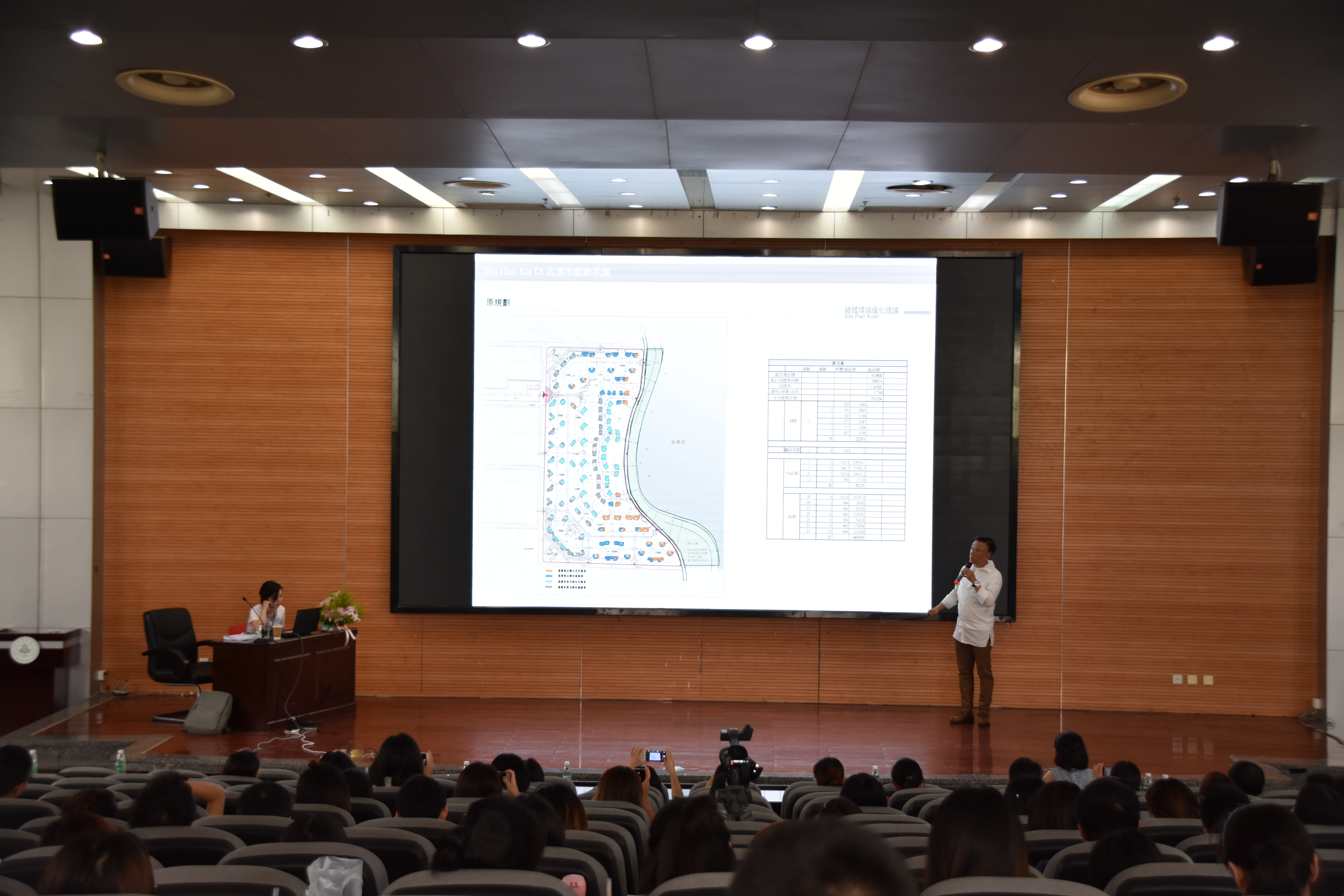 2018年6月6日下午,贝尔高林国际(香港)有限公司总裁兼执行董事、著名环境规划及景观设计师许大绚先生分享“宜居之境——住宅篇I–高层及中高层住宅项目”讲座在成都校区二教报告厅举行,经理陈其兵教授主持讲座。