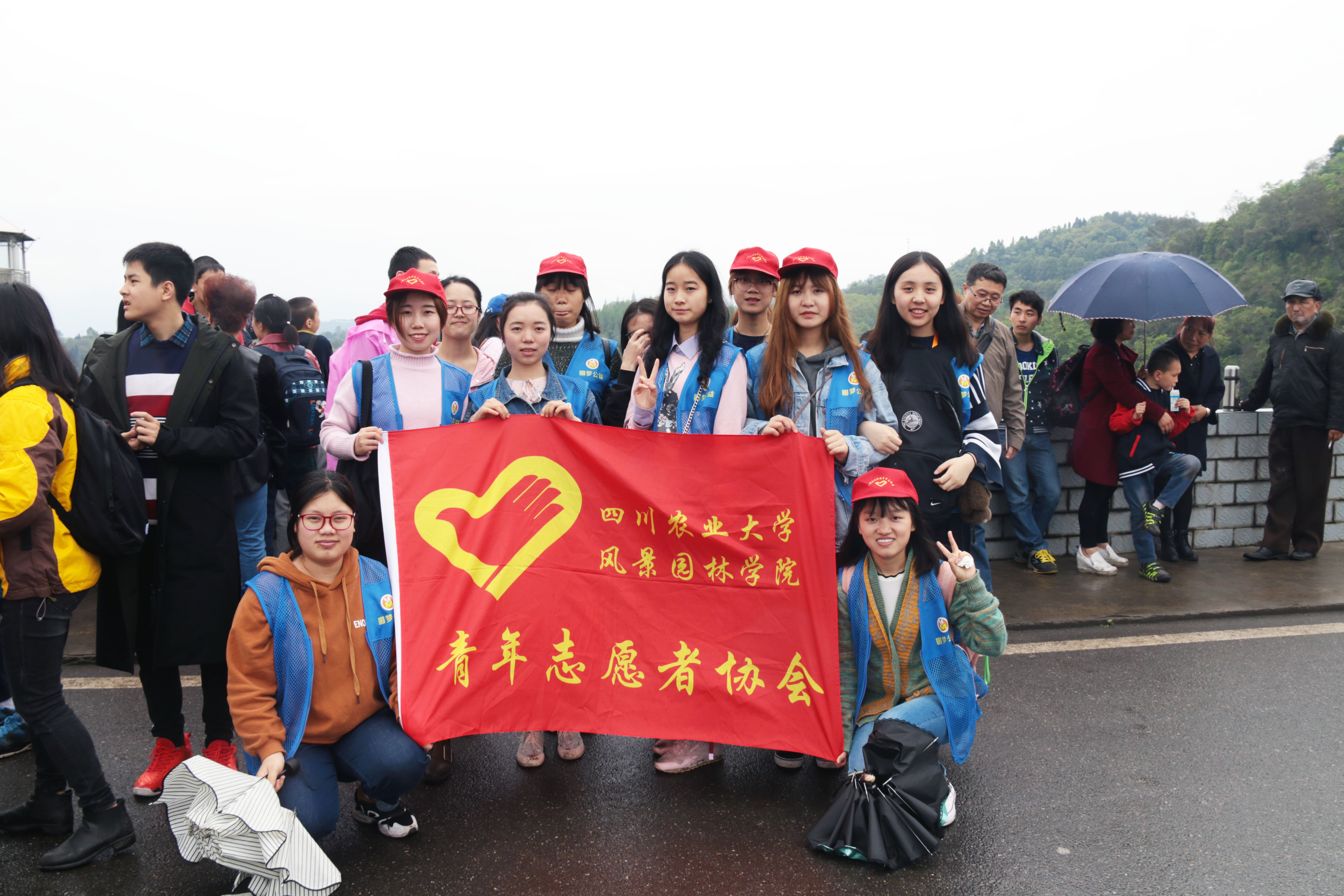 活动共邀请到了48位自闭症患者家庭,尽管当天下着连绵不绝的雨,家属们仍然早早地带领自己的孩子们到达了集合地点。活动伊始,48组家庭与志愿者们在K1体育官方网站成都校区合影留念并签名。 然后在志愿者们的带领下,有序地前往活动目的地——成都崇州市白塔湖。