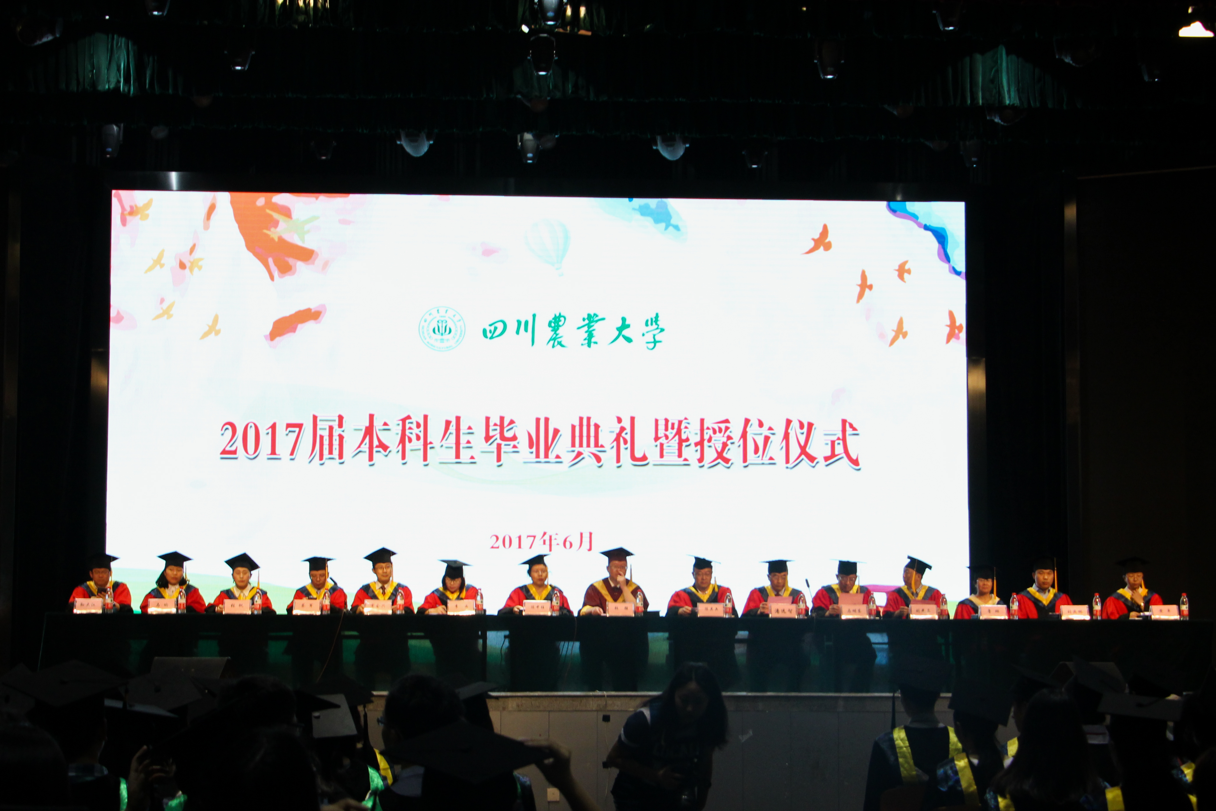 学士帽上流苏转动,转过悠长的岁月,转过如梭的四年,袍袖舞动间大学的时光匆匆而逝。这不短不长的光阴中或许有遗憾,有失落,有辉煌,岁月本就是一场有去无回的旅行,好的坏的都是风景。伴随着“歌唱祖国”的歌声响起,2017届的毕业生们即将翻开人生的新篇章,希望他们能乘千里长风,舞出梦中之景!