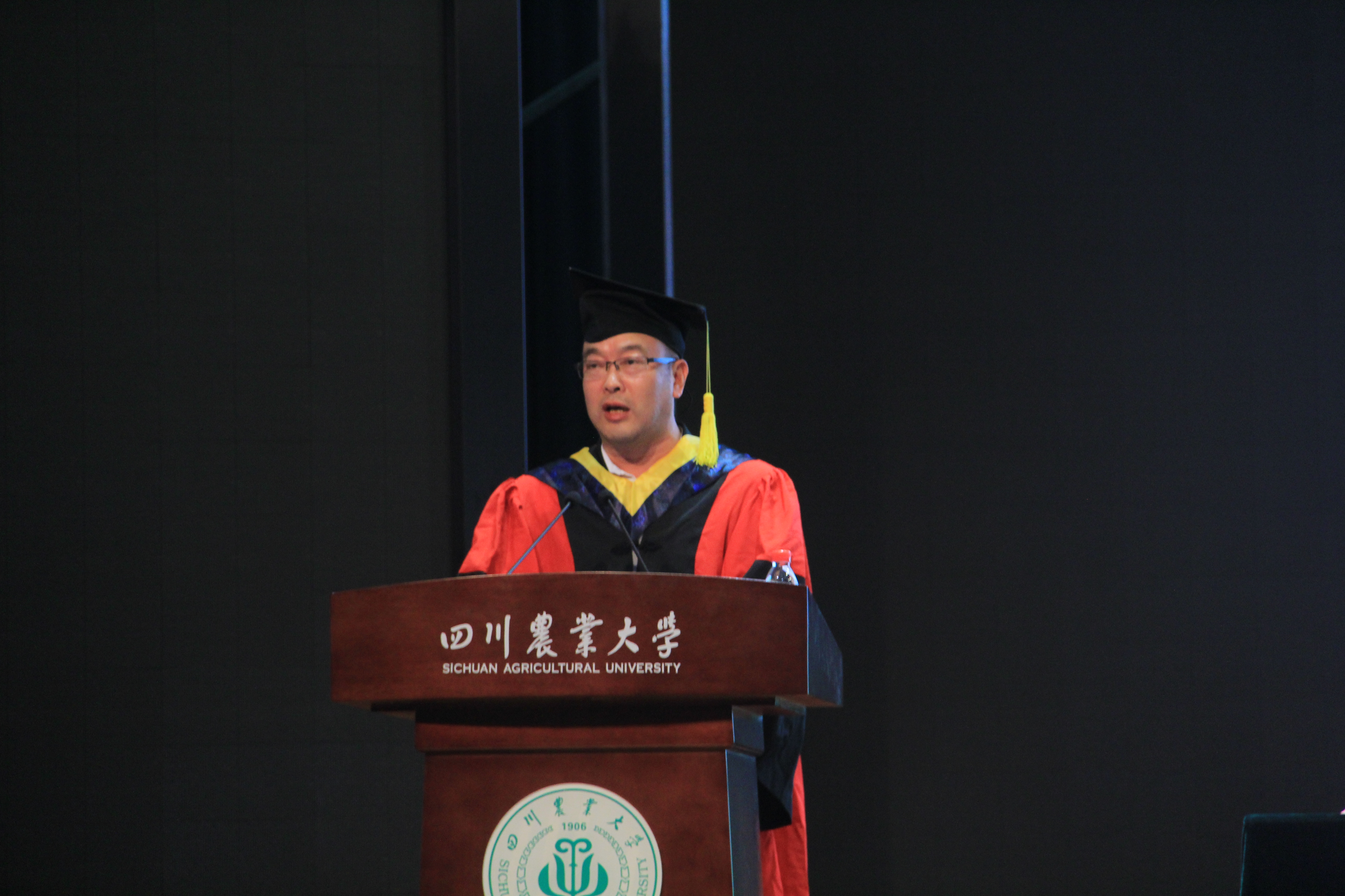 公司副经理潘远智教授宣读优秀毕业论文、优秀大学毕业生表彰决定及表彰名单,其中8人获得“四川省优秀老员工”、39人获得 “校级优秀老员工” 荣誉称号,黄楚梨等五人获得优秀学士学位论文(设计)奖励并接受公司老师颁奖。