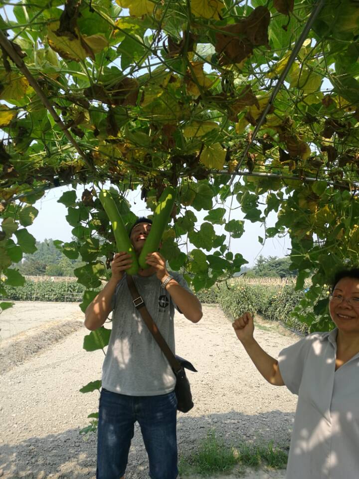 在基地负责人蒲晓蓉的带领下,老师们逐一参观了水稻区、蔬菜园。水稻区的沟渠规划,蔬菜区垄上与垄下品种的差异等,在农科出生的老师们中产生了强烈的共鸣,称赞水稻的长势喜人,蔬菜品种的多样性。仅茄子就有浅紫色、深紫色、白色,形状有长条形、梨形、圆形等。随后,老师们开始了现场采摘体验,带上大口袋,大剪刀进入蔬菜园,采摘满园成熟的蔬菜,各式各色的辣椒,西红柿、茄子,长短不一的胡瓜、冬瓜,不一会的功夫,近200公斤的蔬菜就采摘下来。采摘过程大汗淋漓,但是洋溢着欢声笑语,工作的疲劳被烈日蒸发掉了。