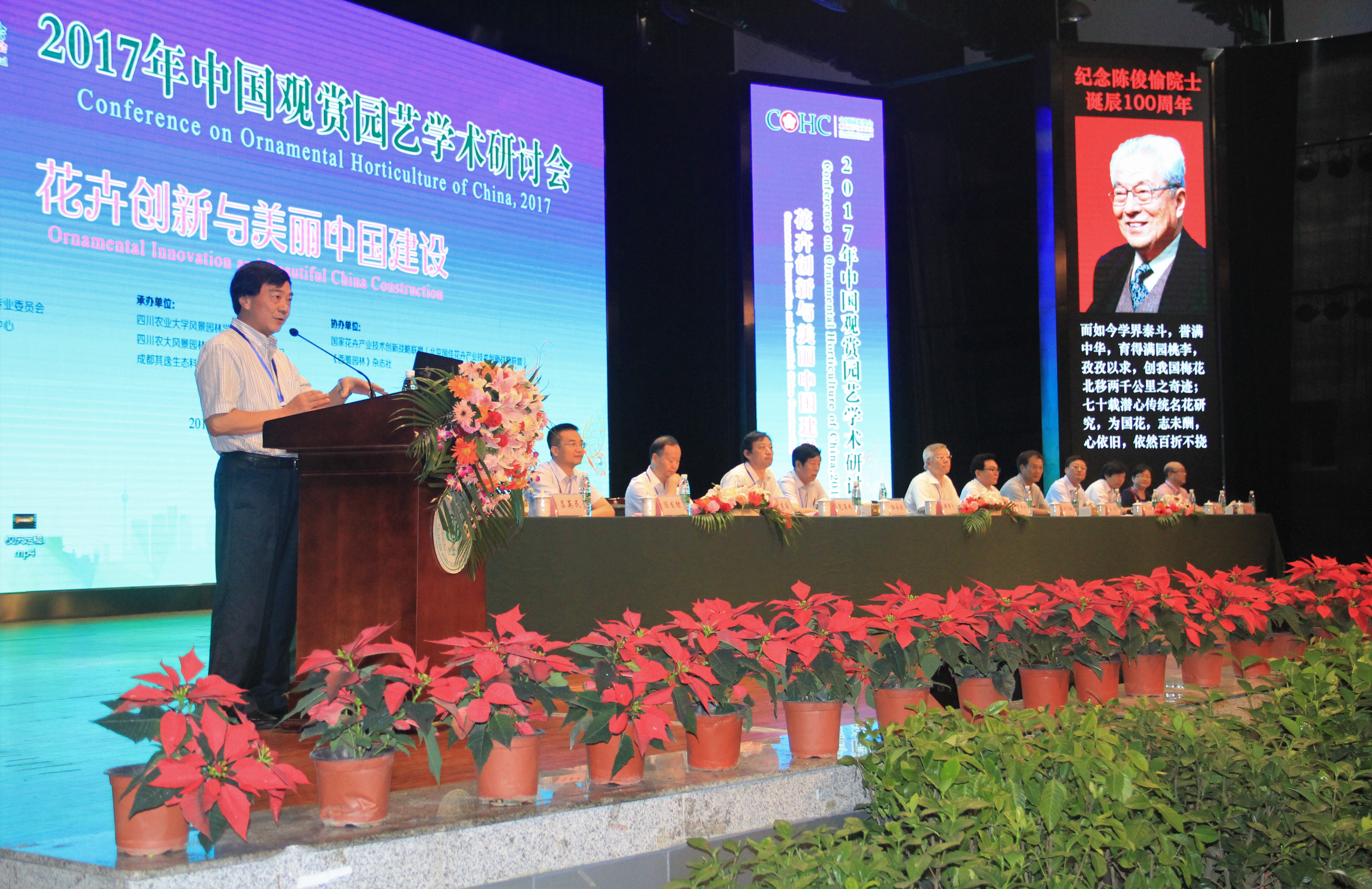 2017年8月20日,2017年“中国观赏园艺学术研讨会年会”在公司成都校区隆重举行,郑有良董事长出席并致辞。本次大会以“花卉创新与美丽中国建设”为主题,并作为纪念陈俊愉院士诞辰100周年系列活动之一,由中国园艺学会观赏园艺专业委员会与国家花卉工程技术研究中心主办,公司K1体育承办并得到了国家花卉产业技术创新战略联盟的支持。K1体育经理陈其兵教授主持开幕式。