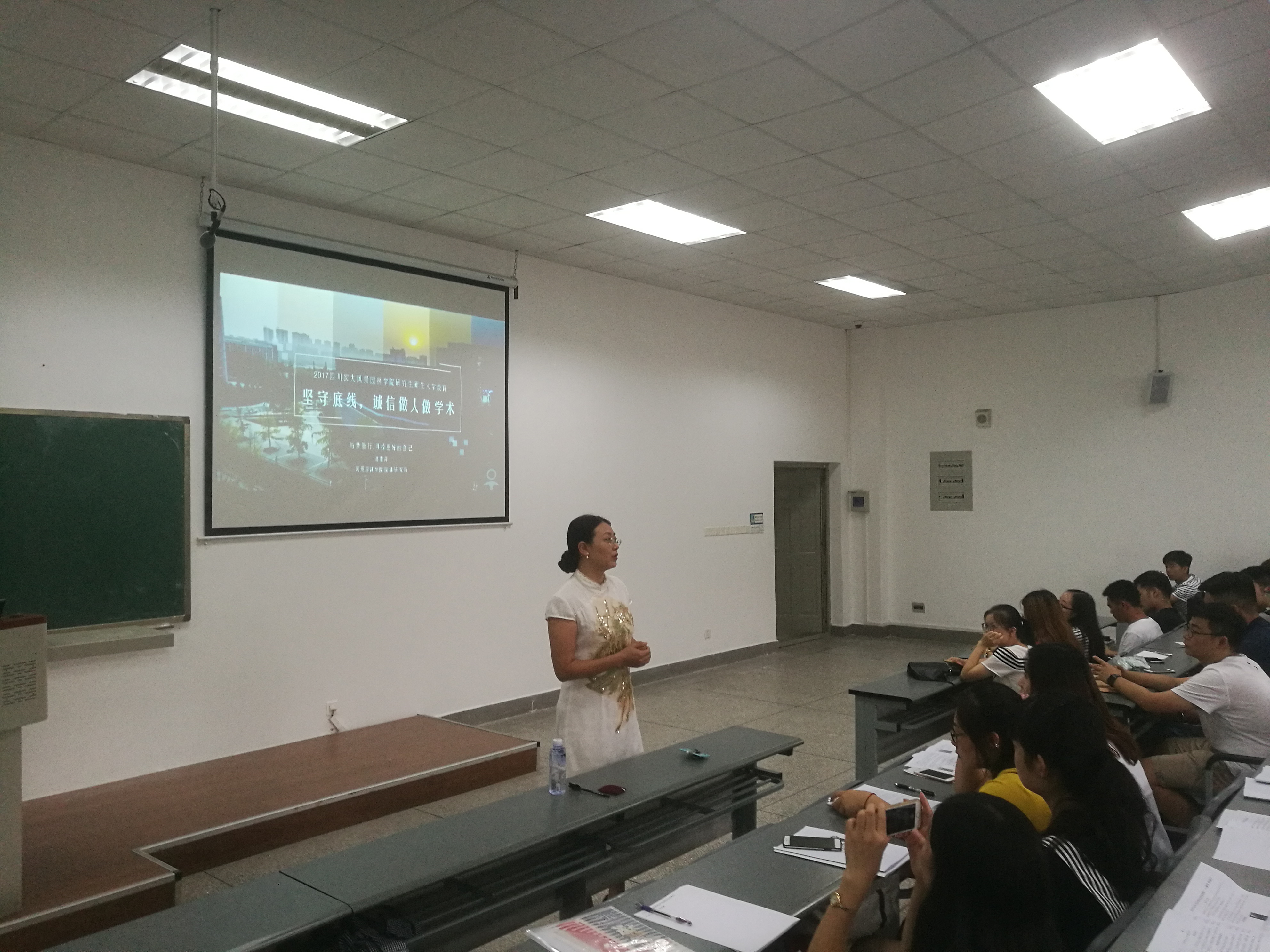 高素萍做了题为《坚守底线,诚信做人做学术》的专题报告,她从现实事例,自身体验等方面强调了科研诚信的重要性,并要求研究生群体应该具备科研诚信的基本素养。