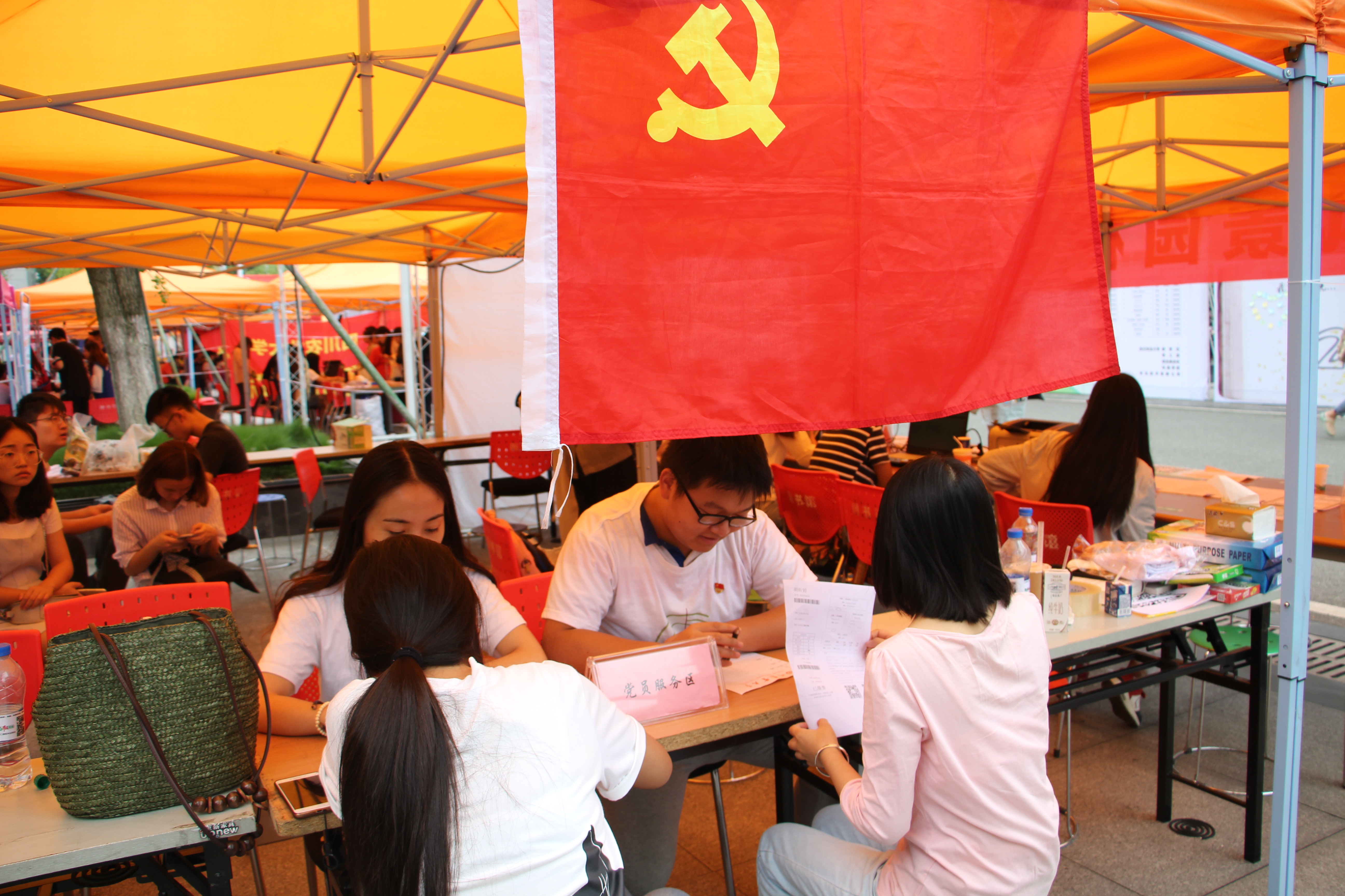 “两学一做”学习教育活动开展以来,公司党委要求员工党员注重知行合一。在迎接2017级新生开始,在新生接待点设立了党员服务区,员工党员皆着院服戴党徽为新生和家长提供优质服务和咨询。包括:进入大学后怎样才能入党,需要从哪些方面努力才能早日加入党组织;不是共青团员能否申请加入党组织等问题。也主动解答员工、家长提出的有关考研、出国等问题。