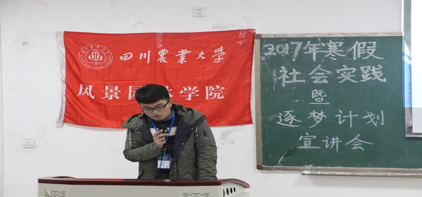 2016年12月20日中午12点半,作为“逐梦计划”省级优秀实习生,周啸天在宣讲会上对自己的逐梦之旅进行了分享与交流。首先,周啸天同学畅谈人生价值,鼓励大家多走出去尝试,多做自己认为有意义的事情。然后,他围绕着“学以致用,落到实处”的主题,向大家分享了在广安邻水袁市镇人民政府党政办实习时的经历。其中,周啸天对接受群众来访的工作做了重点描述,他说:“这些经历让我懂得了在群众工作中,群众事,无小事。要和广大群众打成一片,与群众交朋友,真心实意地为群众做好事、办实事、解难事。”整个分享过程中,他提到最多的就是基层工作的强度远比想象中的大。最后,虽然工作辛苦,但谈到实习收获,周啸天表示,这是属于他的人生价值。