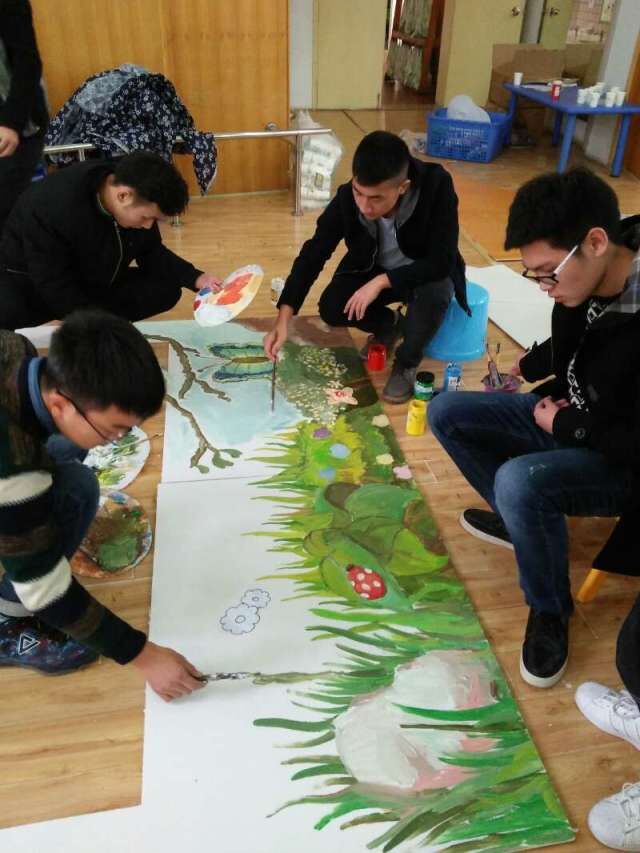 2016年1月6日,K1体育学子一行人到温江惠民幼儿园进行寒假社会实践,帮助幼儿园筹备和举行一年一度的年会。学子们与幼儿园小朋友一起画墙绘、剪纸、制作装饰品,焦林同学用自己独特的绘画技巧,绘制了一幅漂亮的板绘。