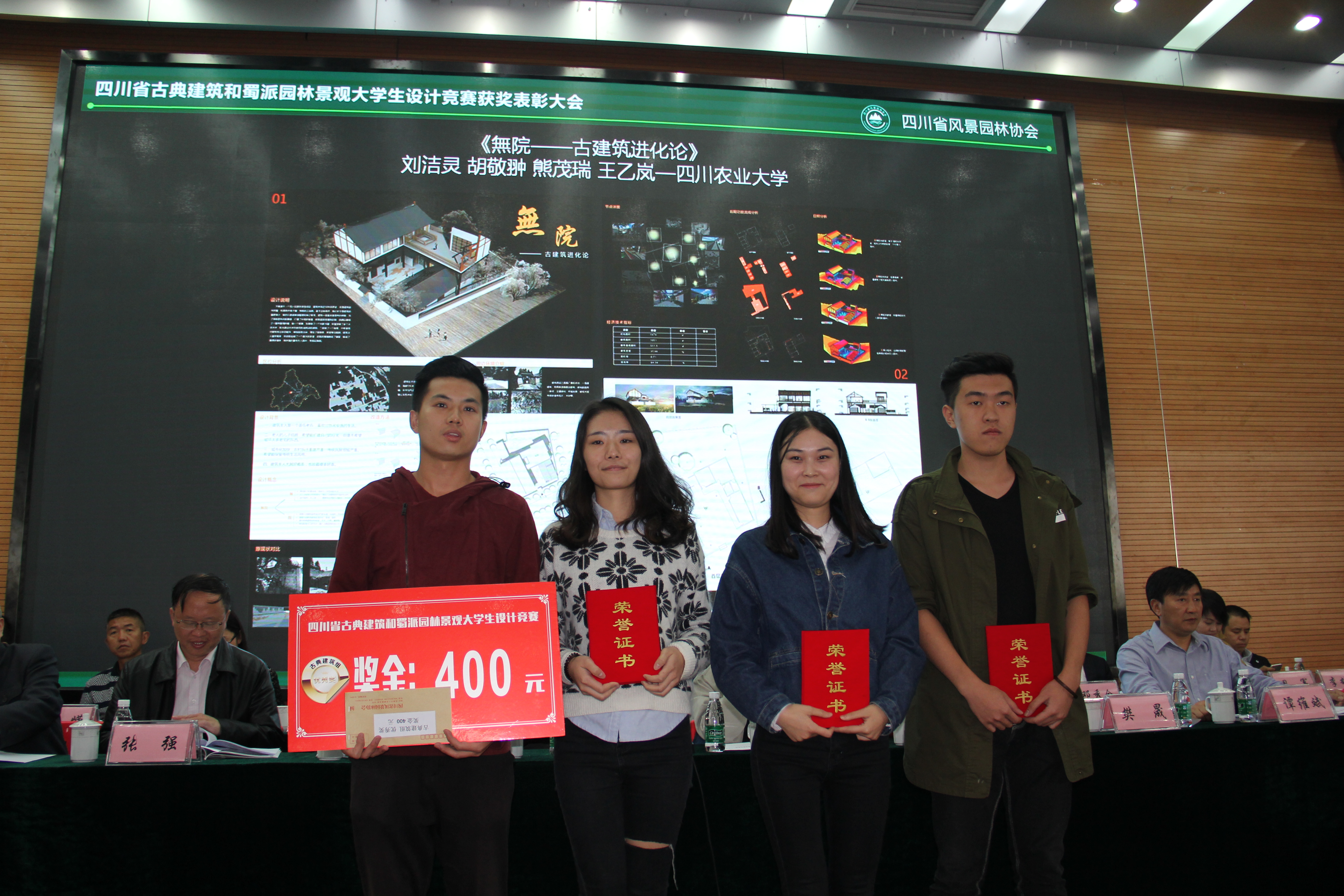 2016年10月12日下午两点,成都校区二教报告厅中,高朋满座,热闹非凡——四川省古典建筑和蜀派园林景观老员工设计竞赛表彰大会在公司荣誉举行。本次大赛由四川省风景园林协会主办,张强副董事长到会致辞并颁奖。经过历时8个月的以成都杜甫草堂作为创意竞赛对象的23个获奖名额中,有9个被公司K1体育员工收入囊中,本次大赛一等奖空缺。作品《栖南》获得园林组二等奖;作品《少陵史诗天下闻,子美情圣鲜人知》、《昔我去兮,今我来兮》、《蜀脉——栖居山水的诗意》获得园林组三等奖;《成都甫》、《锦城遗梦》、《诗话草堂——杜甫草堂休息点景观改造设计》、《忆少陵,红墙影》获得园林组优秀奖;作品《無院——古建筑进化论》古建筑组竞赛优秀奖。K1体育也被授予大赛的优秀组织奖。