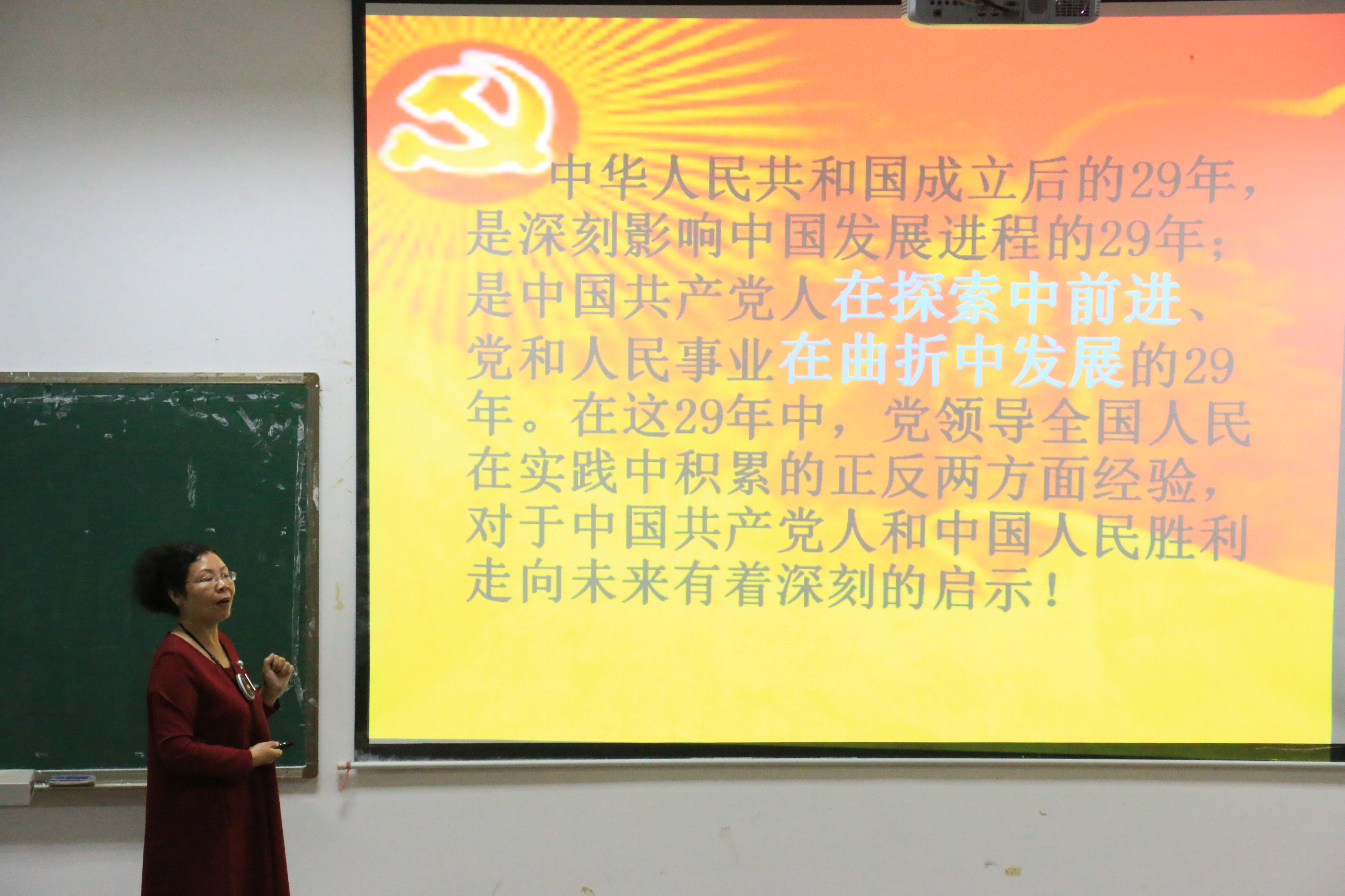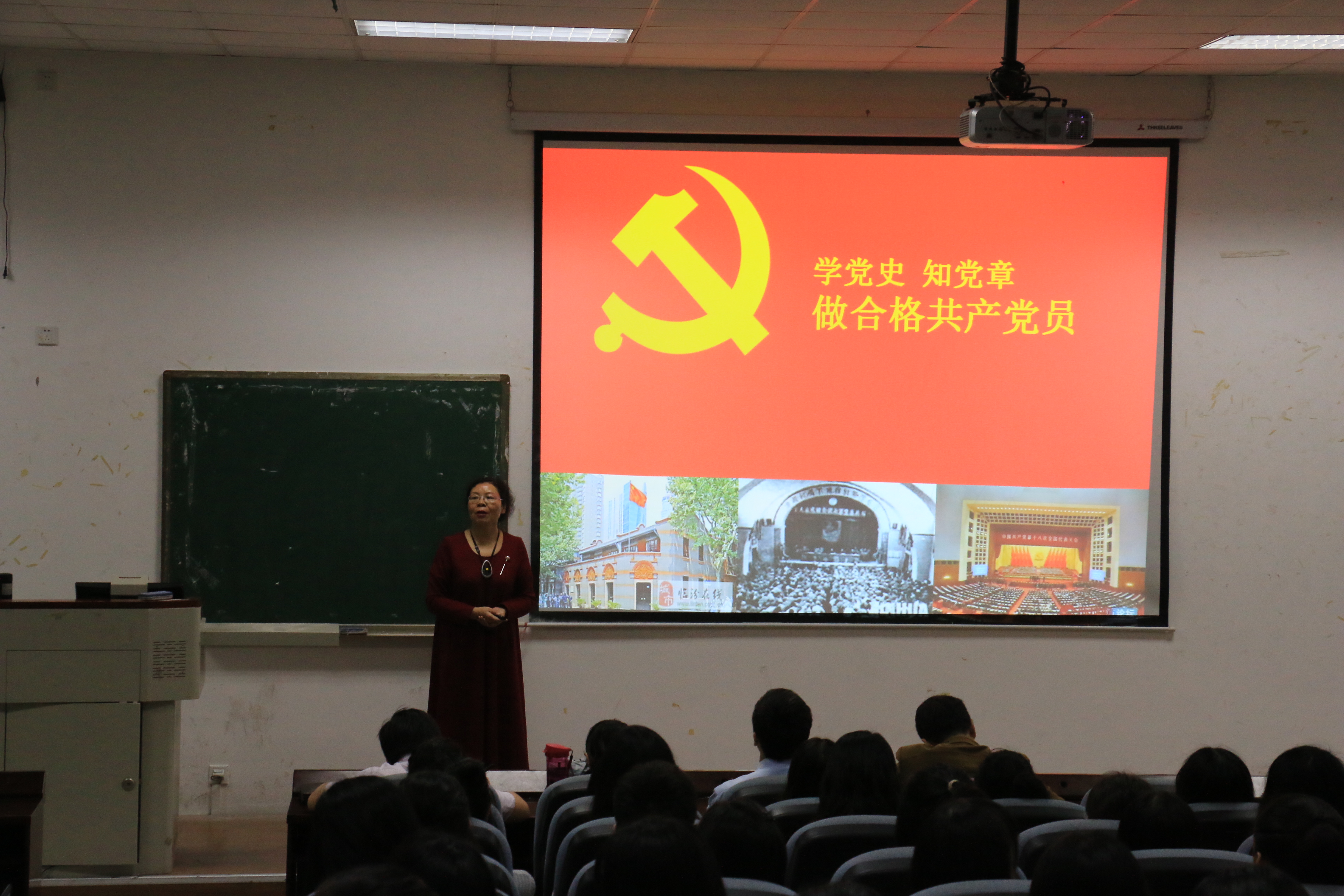 本次党课使党员同学受益匪浅,也使同学们深刻的记住——“今天是9.18,八十五年前的今天,中国遭受了前所未有的危机,山河壮烈,捍卫家园;八十五年后的今天,土地依旧是那片土地,天依旧那样的蓝,水依然向大海奔涌而去,但中国,已经从亚洲,从世界站立起来了,向抗日烈士致敬,向不朽先驱致敬,向前进的中国致敬,向伟大的党,致敬!”