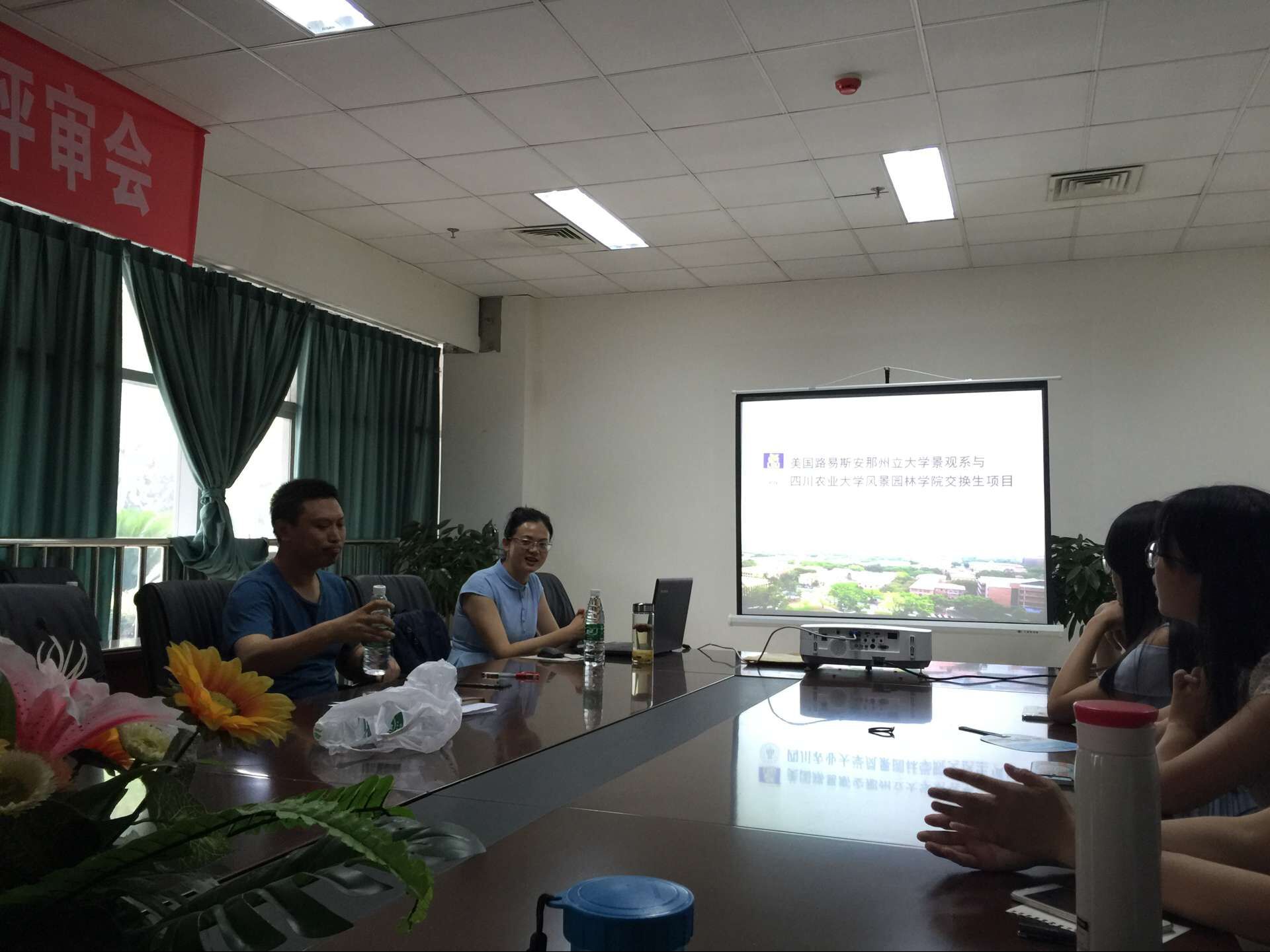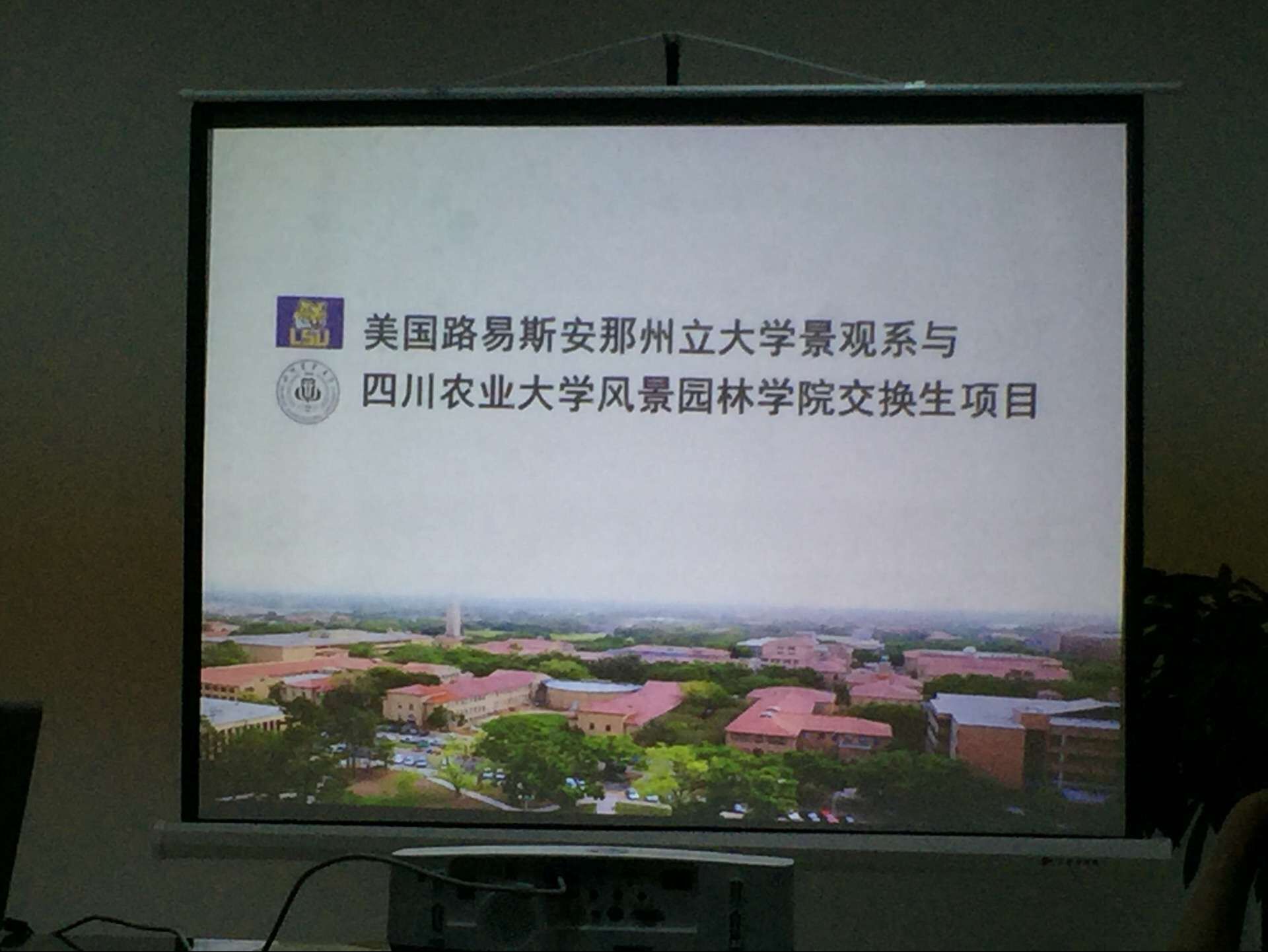 在班主任李洋老师的组织下,与郭老师的交流分为三个方面,一个是美国路易斯安那州立大学景观系的情况,第二是“老虎公司”与公司的交流项目,最后是介绍如何申请公派路易斯安那州立大学交流。条理清晰,逻辑分明。
