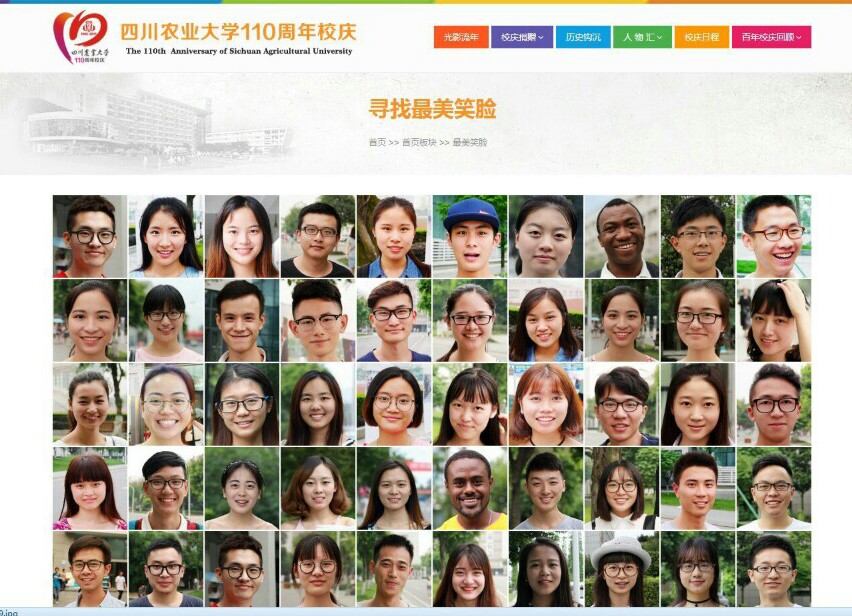 2016年,我们K1体育官方网站将迎来110周年校庆,百载年岁,在这块饱含辛勤耕耘的土地,我们用微笑面对挫折,进而越战越勇,我们用微笑喜迎荣耀,脚踏实地更进层楼。川农人,用微笑面对人生百态,用微笑谱写百载华章,川农人的笑脸,记录我们的过往,承载着我们对母校的深情,我们,用笑脸回眸110周年,我们用笑脸迎接下一个百年。