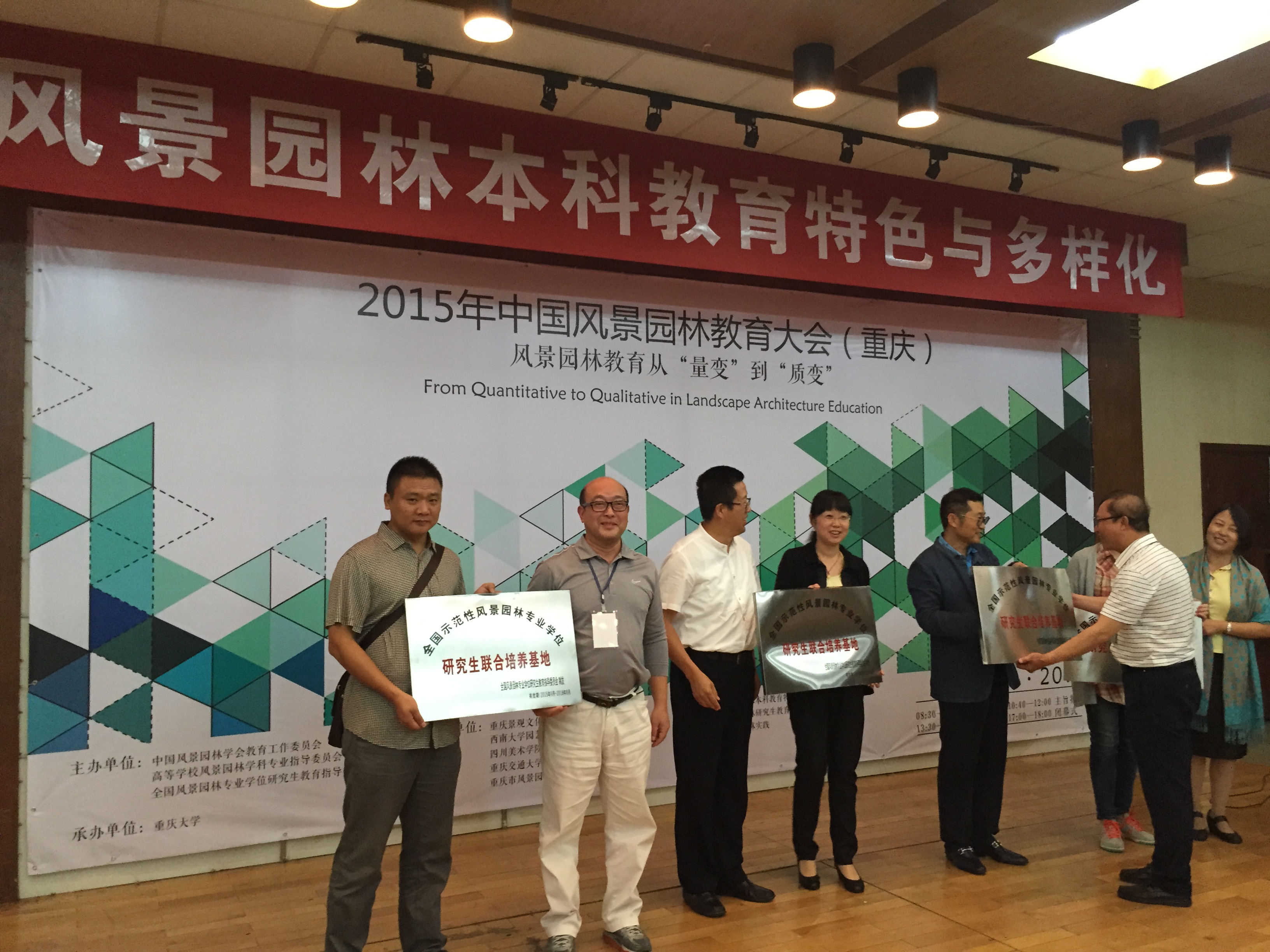9月18日,在重庆大学举行的全国风景园林教育大会上,全国风景园林专业学位教育指导委员会向获得“全国示范性风景园林专业学位”研究生联合培养基地的单位进行了授牌仪式。由K1体育和四川农大风景园林设计研究有限责任公司共同申报的研究生联合培养基地获此殊荣,全国共有10所院校成功申报。