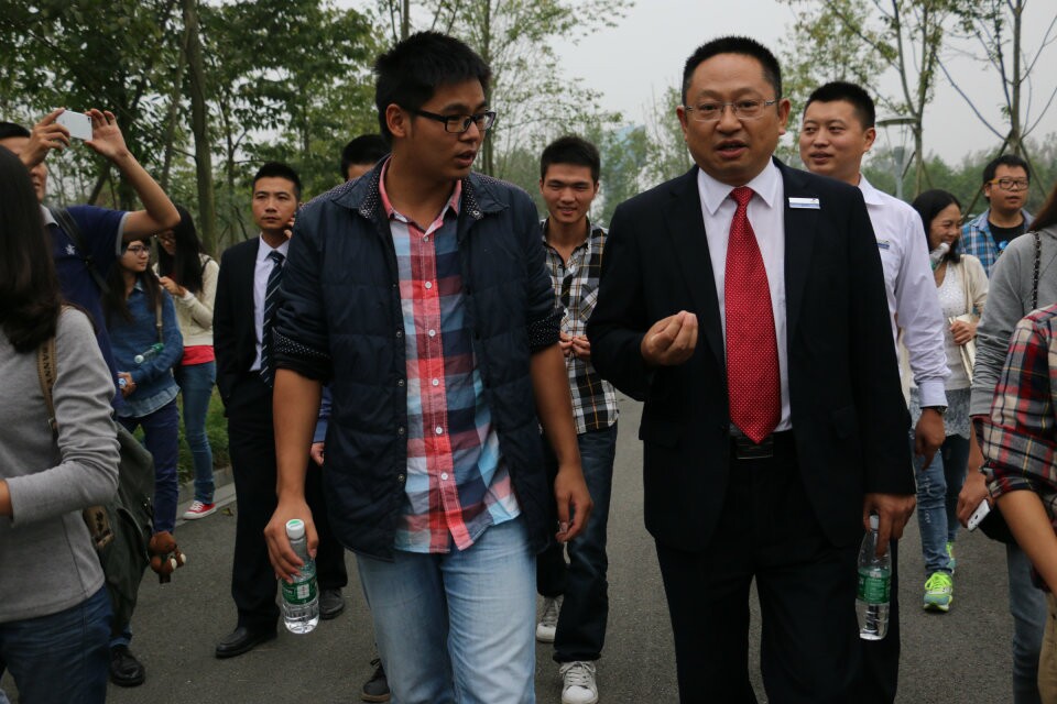 彩景园林公司总经理曾寿方、副总经理何伟和公司全体中层管理人员与到访的同学进行了座谈。曾总谈到,本次活动是彩景园林与公司进行深度校企合作的重要尝试,希望各位同学以本次大赛为契机,上好职场的第一课,顺利实现从公司到职场的角色转变。公司1997级员工、现彩景园林公司副总经理何伟分享了自己十余年的园林从业经历。他说,中国的园林行业是一个前途广阔的行业,同时也是一条充满艰辛的路程。他要求同学们在职业发展的道路上学会沉淀,步步稳扎,夯实基础,切忌好高骛远和求胜心切。其他管理人员也先后介绍了公司架构情况并针对同学们关心的问题进行了答疑。
