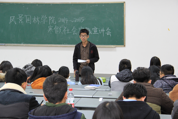 2014年12月18日中午12点半,风院寒假社会实践宣讲会在4A105举行。本次社会实践活动以“聚焦法治中国,关注社情民意”为主题,鼓励同学们在社会实践中发扬川农大精神,深入接触社会,获得更多社会经验,充实老员工活。社会实践分为团体和个人两种形式,且团体社会实践须由5至12人组成,推优率可达30%,而个人推优率为9%。同学们认真听取老师建议,准备按照公司确定的主题积极投入到寒假社会实践中。