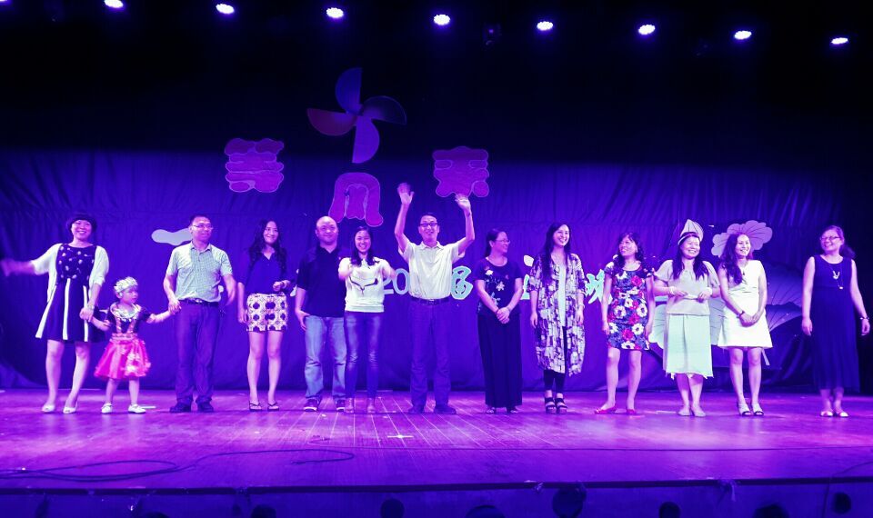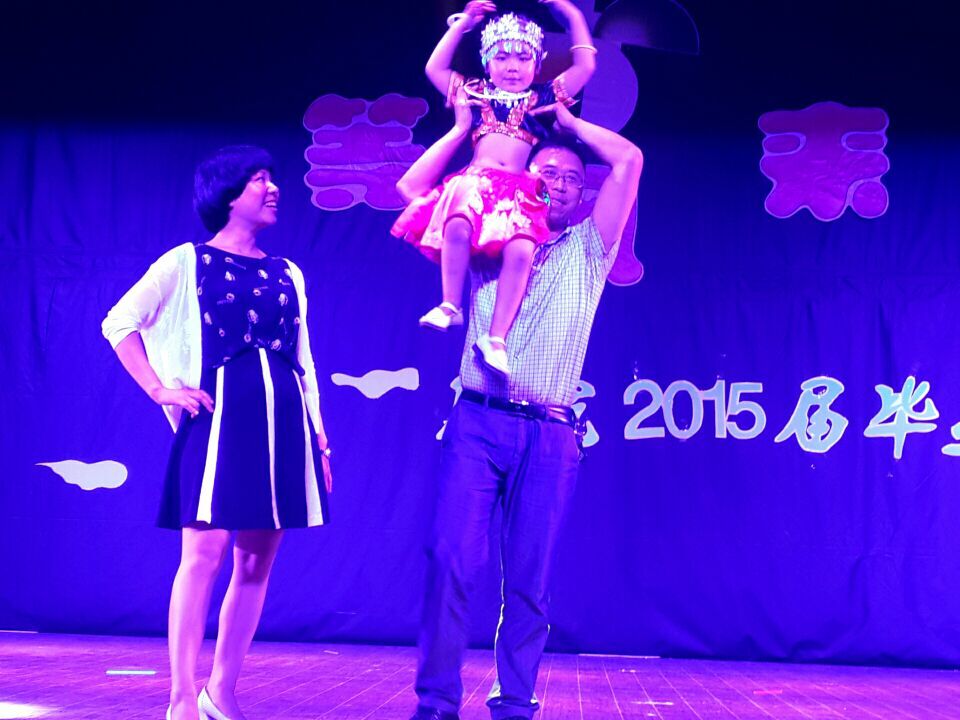 在乐队淡淡的感伤节奏中,晚会拉开帷幕。《不负青春不负你》的歌曲串烧将大学四年的青葱岁月慢慢重现在同学们眼前,不禁感叹韶光易逝,青春难再;别出心裁的有奖竞猜环节,不仅调节了现场气氛,更让师生们的互动更加密切;《千千阙歌》和《safe and song》展现了毕业生的多样风采;由公司毕业班班主任、辅导员集体带来的T台秀更是瞬间引爆全场,身怀六甲的姜贝贝老师与丈夫手挽手第一个亮相,台下沸腾。台湾籍老师张益昇与夫人万蕊都是毕业班班主任,夫妻俩同台走秀,同学们纷纷鼓掌叫好;黄玉梅、解文锋夫妇还将自己上幼儿园的宝贝一同上台表演,同学们为老师们的独特风姿喝彩。毕业生为走秀的老师送上了鲜花与桃子、李子,寓意为桃李满天下。晚会在毕业歌串烧中缓缓落下帷幕。