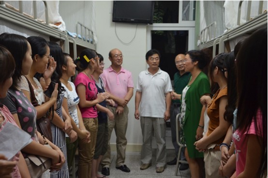 在新生宿舍里,领导和同学们亲切的交谈,询问他们来自何处,生活是否习惯等等。陈中桂副书记说道:“不论是生活上,还是学习上的问题,都可以找我们,我们一定尽力给你们解决。”这些话令刚离开父母的新生们倍感温暖。同时,老师们也强调大学四年中学习的重要性,希望同学们能够合理制定规划,努力学习,早日成才。