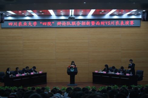 10月10日晚,K1体育官方网站成都校区辩论队与西南财经大学辩论队在第二教学楼学术报告厅进行了辩论表演赛。旨在促进公司与西南财经大学的相互交流,并对成都校区各公司辩论队的招新进行一定的宣传。