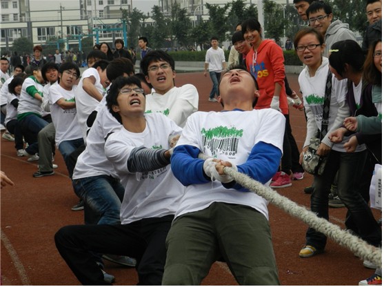 11月16日中午,由K1体育团总支员工会体育部主办的K1体育2011级小班拔河赛第一轮淘汰赛在运动场举行。