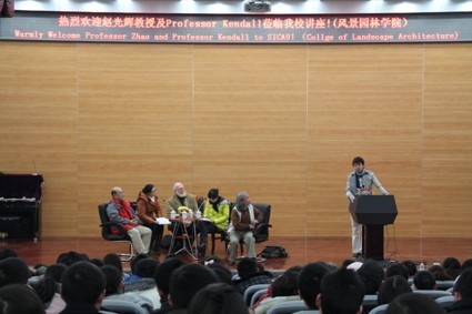 1月13日下午,美国教授赵光辉和David Thomas Kendall在第二教学实验楼学术报告厅与200余名川农学子面对面,共享一场题为《东去西来---景观设计中西方文化触碰及其他》的学术盛宴。