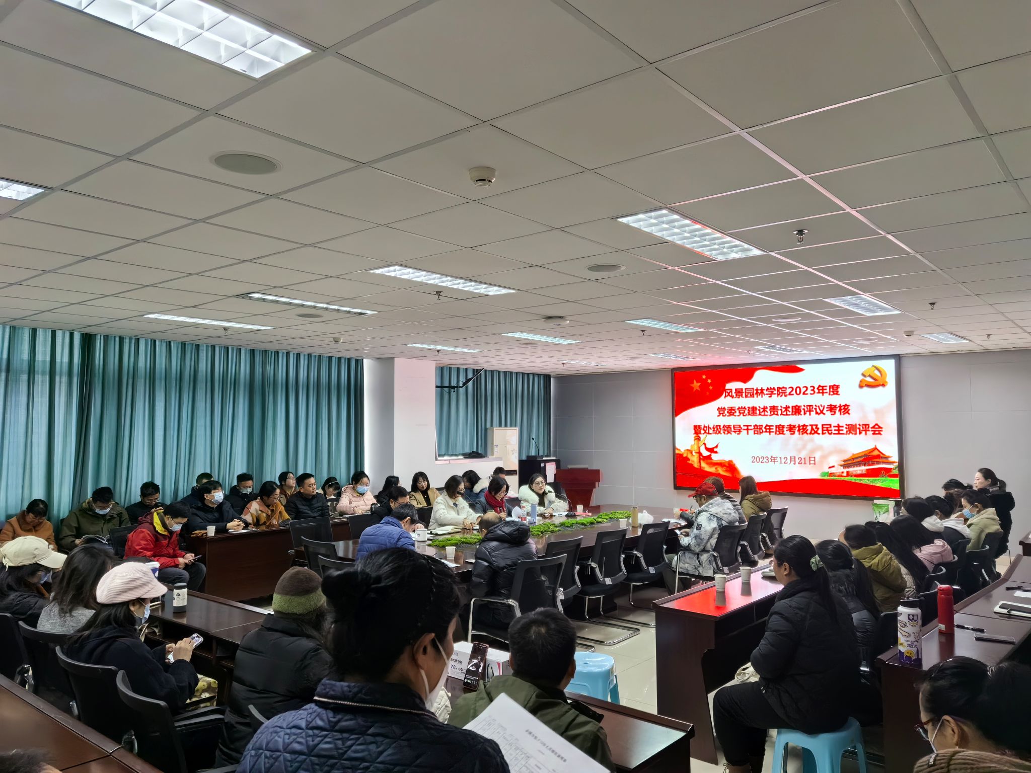 12月21日,公司2023年度党委党建述职述责述廉暨处级领导班子民主测评会在7教609召开。经理、党委书记李西,副经理姜贝贝、党委副书记、纪委书记王丽萍、副经理蔡军及全院教职工参加会议。会议由王丽萍主持。