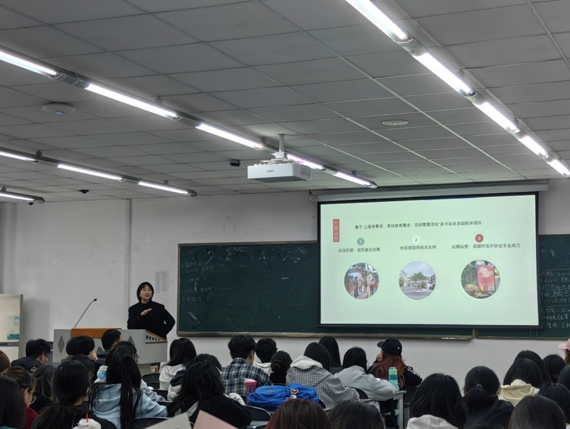 她通过当下一些典型事例,提示学弟学妹在学习和投身公园城市建设的实践中,要以在地居民为中心,以空间建造为媒介,顺应城市肌理,通过充分调研、多方协作、多维增绿、场景赋能等路径,促进社区环境改善优化,用全新的业态和在地文化不断满足人民群众对美好生活的需要,使在地居民文化品位和生活品质得到提高,群众归属感、获得感和幸福感日益增进。在这个过程中,同时让自身社会建设的参与感和使命感、专业的自信心逐渐提高。