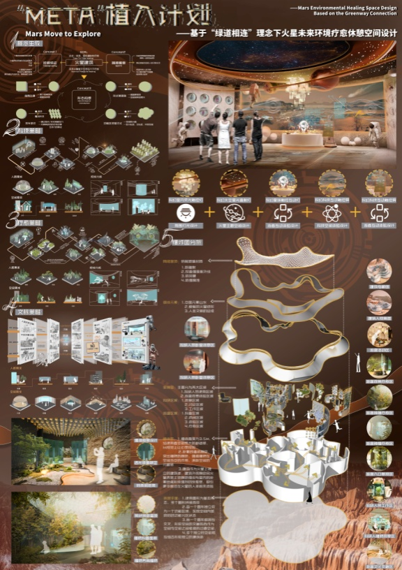 本次大赛自3月中旬启动,历时近三个月,共有100余名艺术类专业员工报名参赛。大赛提供多个的公共空间自由选择,自主设定空间性质,内容涉及火星移民、有机餐厅、意境茶室等空间,重点考察员工的设计知识和技巧应用、团队协作沟通能力以及创新创造思维等。经过初赛的遴选,最终共有10组作品成功进入当天的决赛。