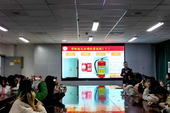 袁健教官以“全民消防,生命至上”为题,围绕消防条例、火灾的危害性、疏散逃生基本常识、火灾预防和应急管理及消防器材使用方法等进行了深入浅出地讲解。通过列举生活电气火灾案例、校园典型火灾案例、与师生互动交流等方式,剖析了生活中普遍存在的火灾隐患,重点强调了员工寝室、实验室违规用电等火灾隐患排查整治及发生火灾的应对方法。以增强师生消防防范意识,凸显了增强消防意识的必要性。