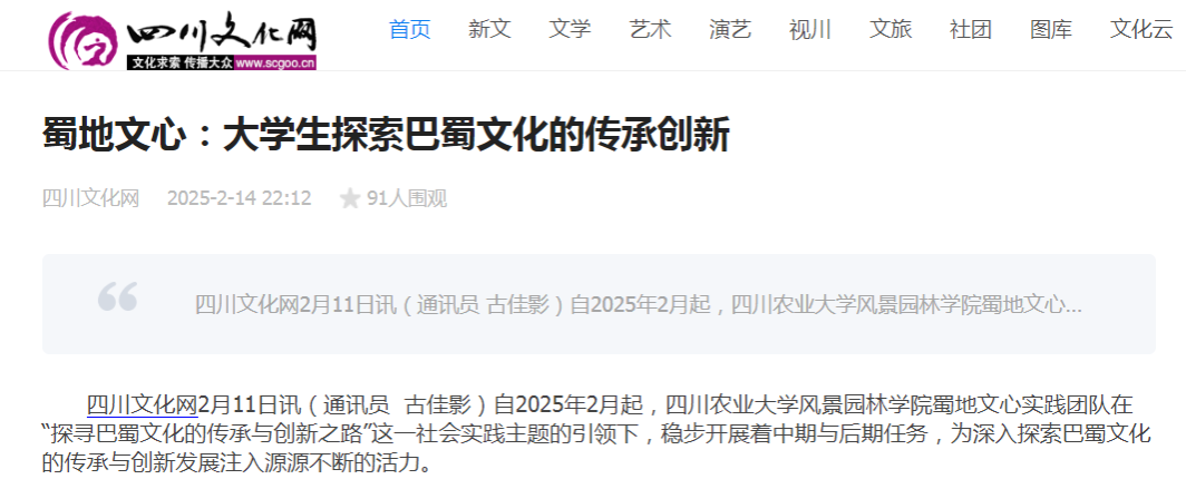 四川文化网2月11日讯(通讯员 古佳影)自2025年2月起,K1体育蜀地文心实践团队在“探寻巴蜀文化的传承与创新之路”这一社会实践主题的引领下,稳步开展着中期与后期任务,为深入探索巴蜀文化的传承与创新发展注入源源不断的活力。