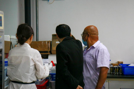 图为公司老师检查并记录实验室相关情况 通讯员 张文星
