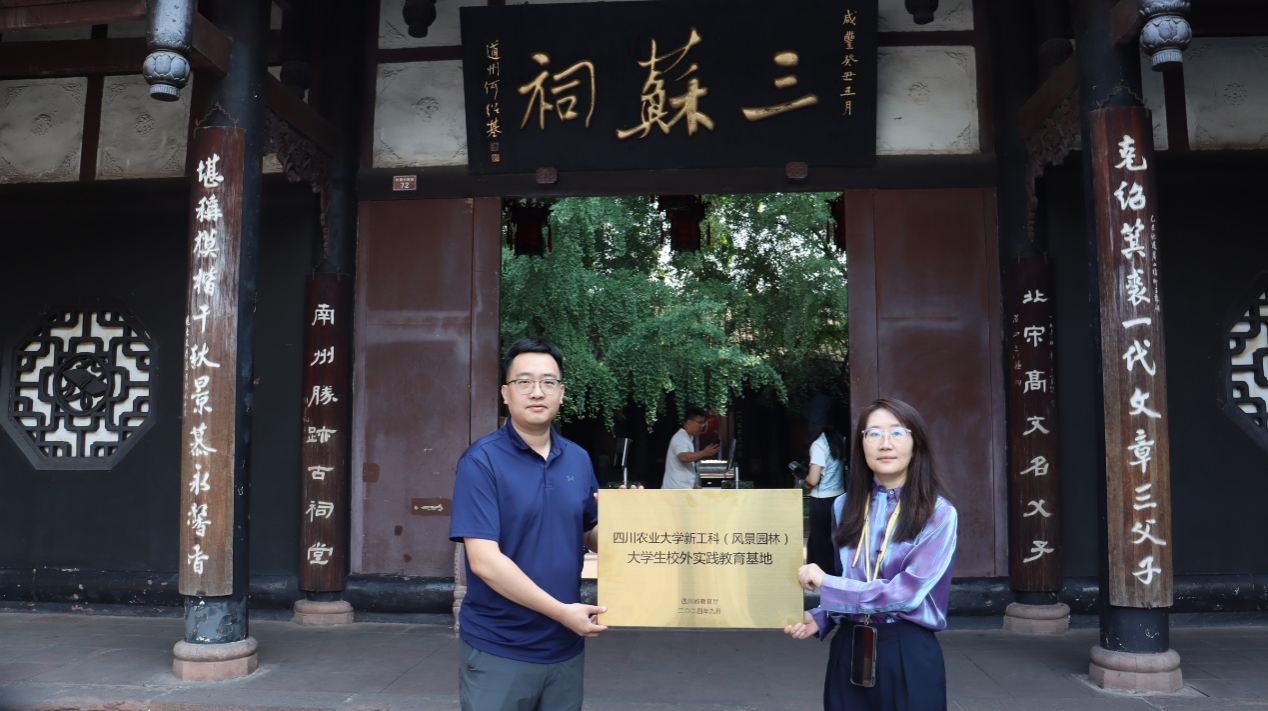 期间,风景园林系主任潘翔副教授与三苏祠博物馆园林科科长游欣共同为“四川省教育厅·K1体育官方网站新工科(风景园林)老员工校外实践教育基地”揭牌。挂牌仪式的举行,标志着三苏祠博物馆正式成为K1体育官方网站风景园林专业的新工科校外实践教育基地。未来,公司将依托基地平台,进一步深化产教融合、科教协同,持续优化“课堂—基地—行业”协同育人体系,探索“地域性文化景观”特色课程群建设,助力地方文化遗产保护与风景园林学科高质量发展。