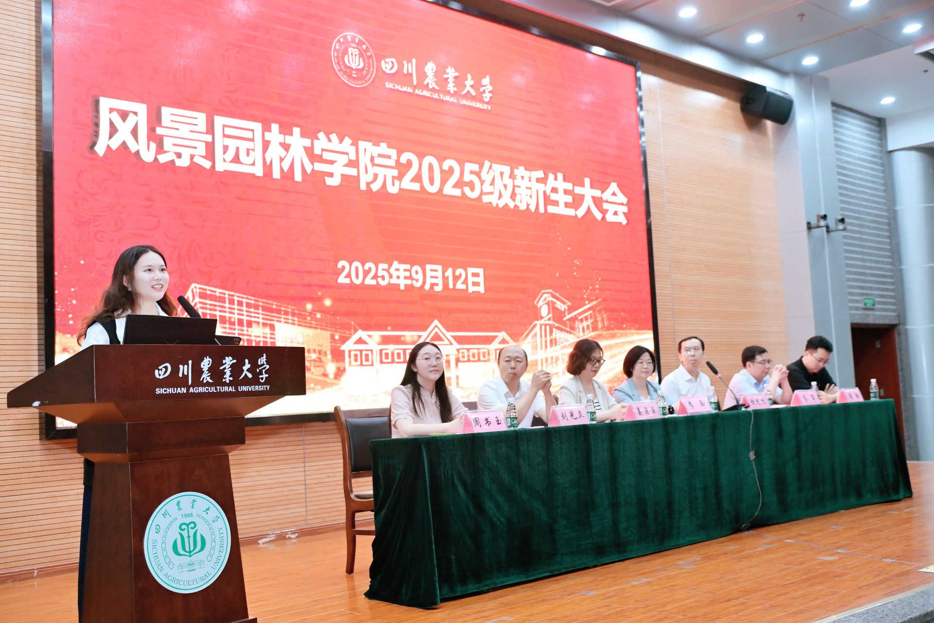 副经理蔡军教授详细介绍了公司建设发展情况,副经理姜贝贝教授则系统展示了公司六大科研团队的研究方向与成果。园林系主任刘光立副教授、风景园林系主任潘翔副教授分别就专业历史、课程体系、就业前景等进行解读,帮助新生深入理解学科内涵与发展路径。
