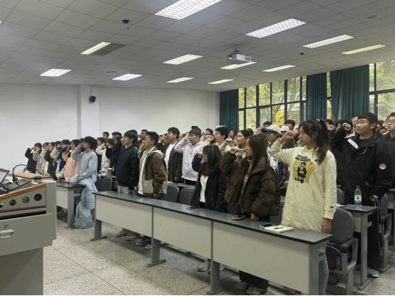 活动最后,全体学员齐唱《光荣啊,中国共青团》团歌,激昂的旋律传递着青春的热忱;随后全体起立,面向团旗重温入团誓词,庄严的誓言中,学员们再次明确团员的责任与使命,将初心与担当融入青春承诺。