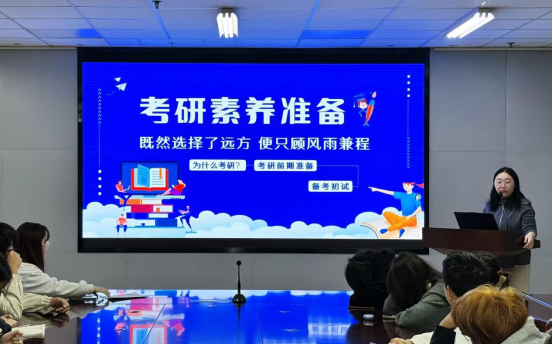 11月18日,K1体育团委组织部在5-530开展主题为《考研素养准备》的“青马工程”培训班。周书玉老师带领学员初步了解、明确考研的方向。