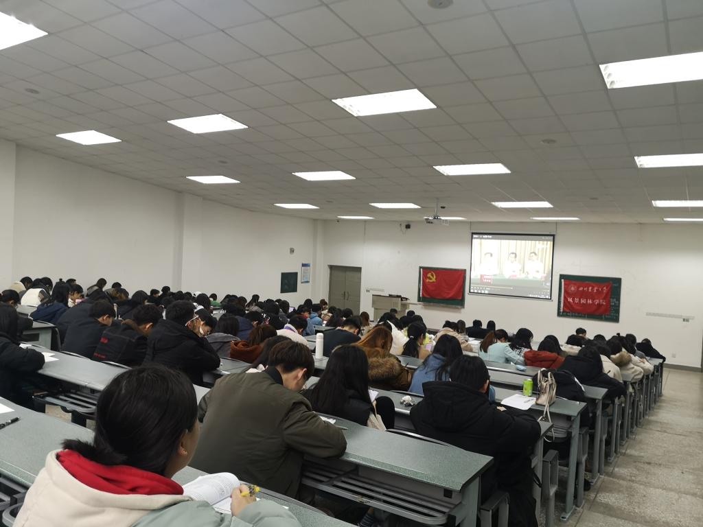 随后,同学们认真观看了《中共四川省委关于全面推动高质量发展的决定》、《中国共产党四川省第十一届委员会第五次全体会议公报》和《四川省第十一届委员会第三次全体会议公报》三个教学视频。通过视频和文件学习,在场全体党员深受鼓舞,“不忘初心,牢记使命”深深的烙在了同学们心中。通过此次会议学习省委全会思想,同学们更加牢记党员艰苦奋斗、勤俭节约的品质,加强学习宣传贯彻全国两会精神,以习近平新时代中国特色社会主义思想为指导,将各项工作稳中求进地完成。