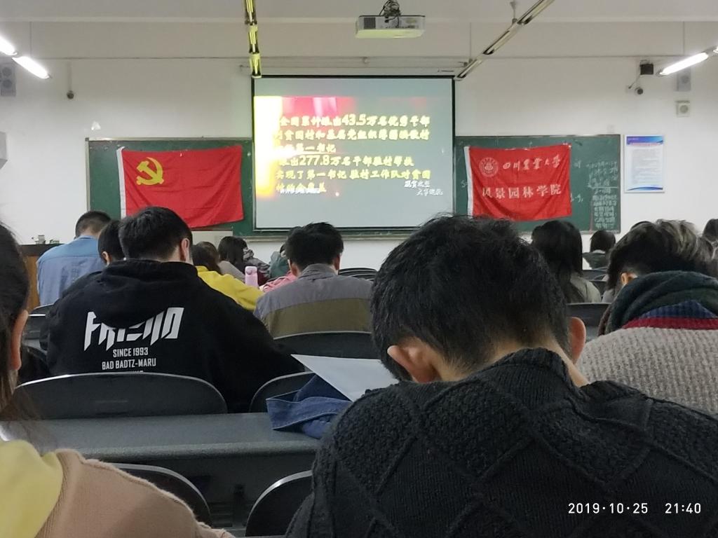 首先,各位拟发展党员专心致志的观看优秀党员干部们的脱贫攻坚事例和“不忘初心牢记使命”的相关视频。观看过程中,大家全神贯注,认真听仔细看,被前辈们的优良品质所感动,面部肃穆的表情表达出了他们对党崇高的敬意。
