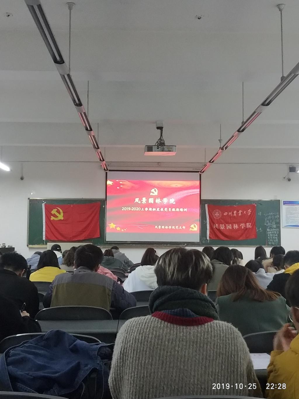 会议开始前,各位拟发展党员有序准时地在教室门口进行签到并落座。短期培训于21:30准时开始。